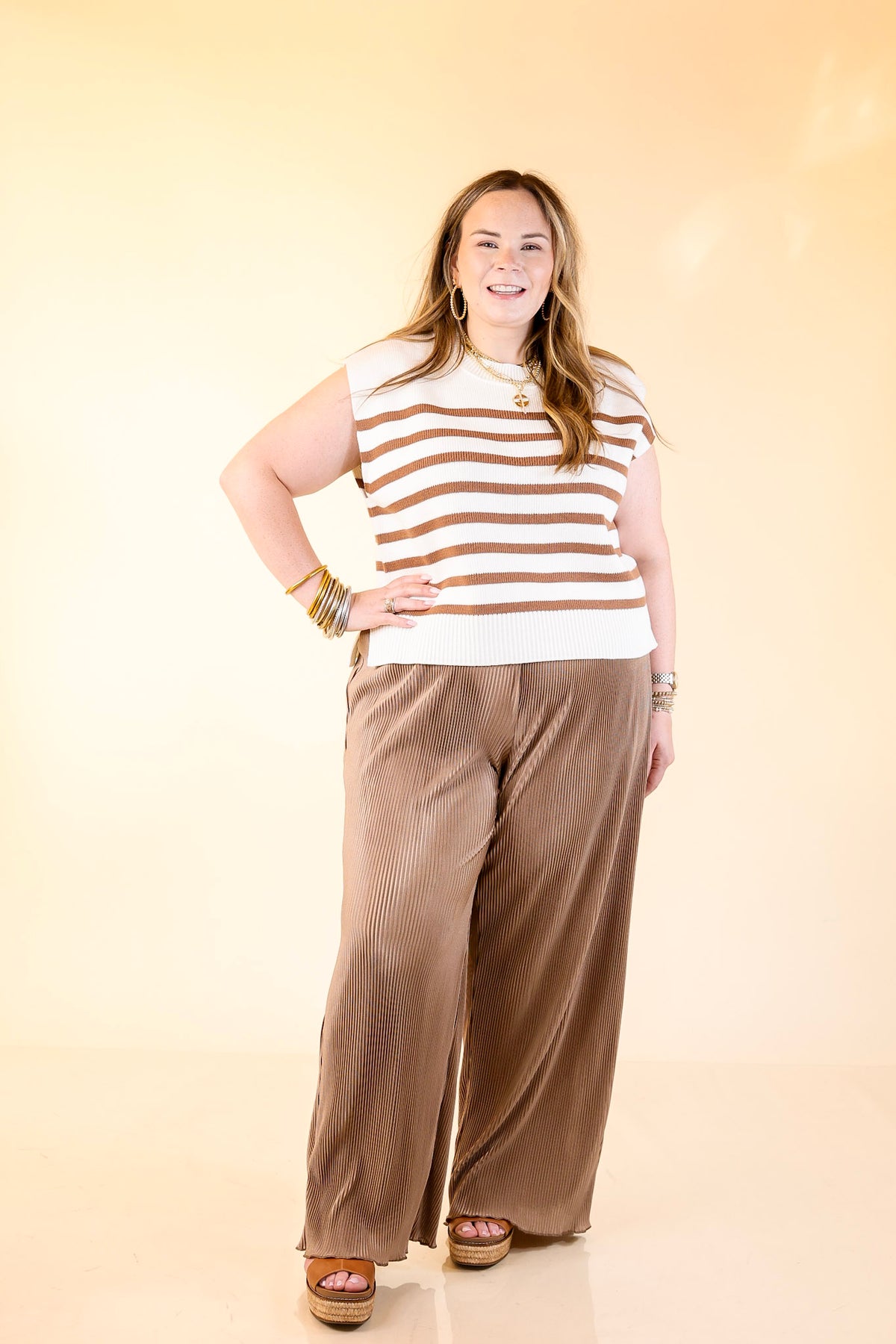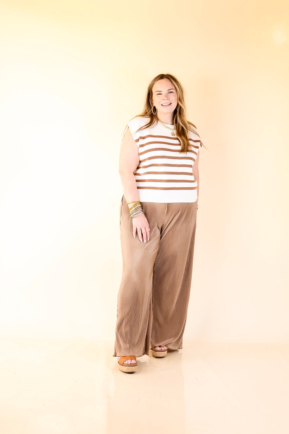 Stripe Things Up Drop Shoulder Knit Sweater in White with Tan Stripes