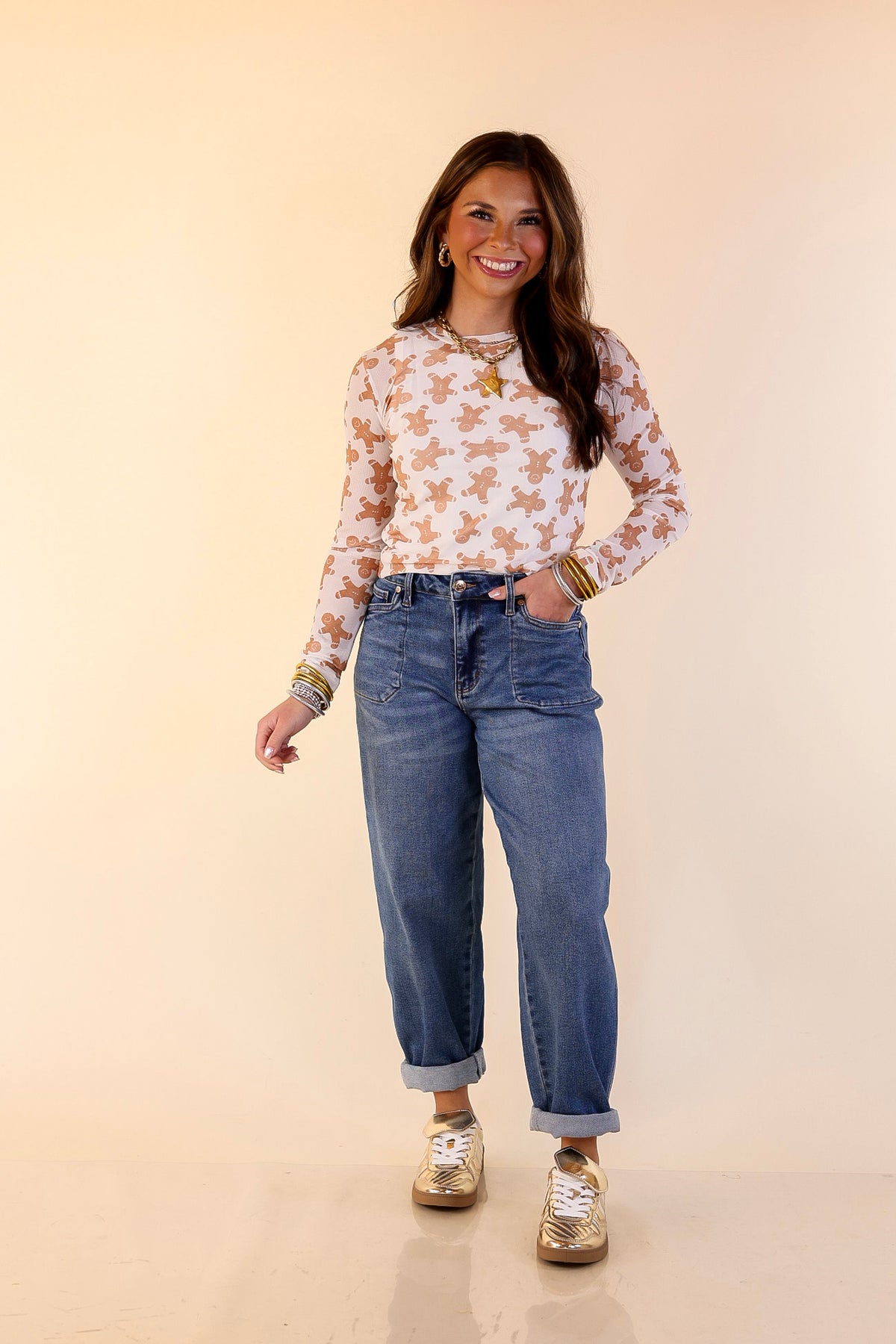 Say hello to The Perfect Layer—the mesh top that brings personality, charm, and a festive touch without ever feeling over-the-top. This lightweight, stretchy mesh features an adorable gingerbread print on an ivory base, making it the sweetest way to add fun to your holiday style.