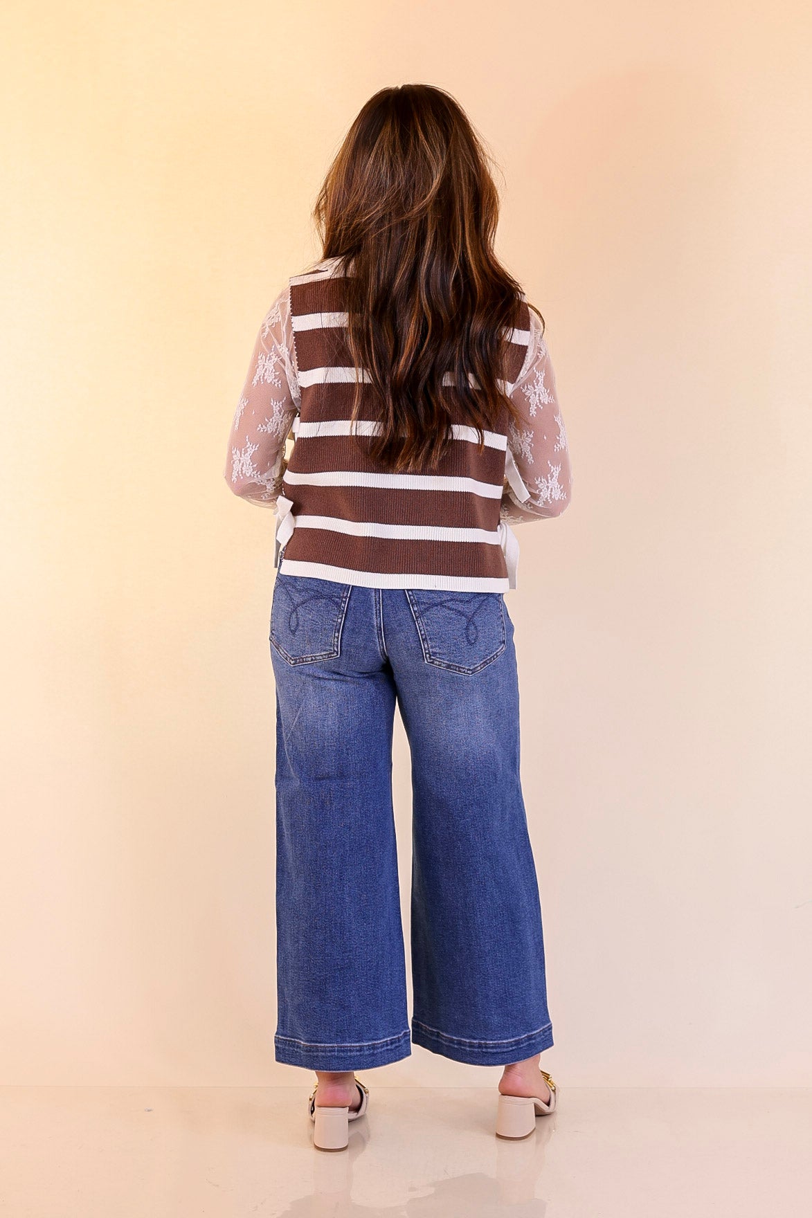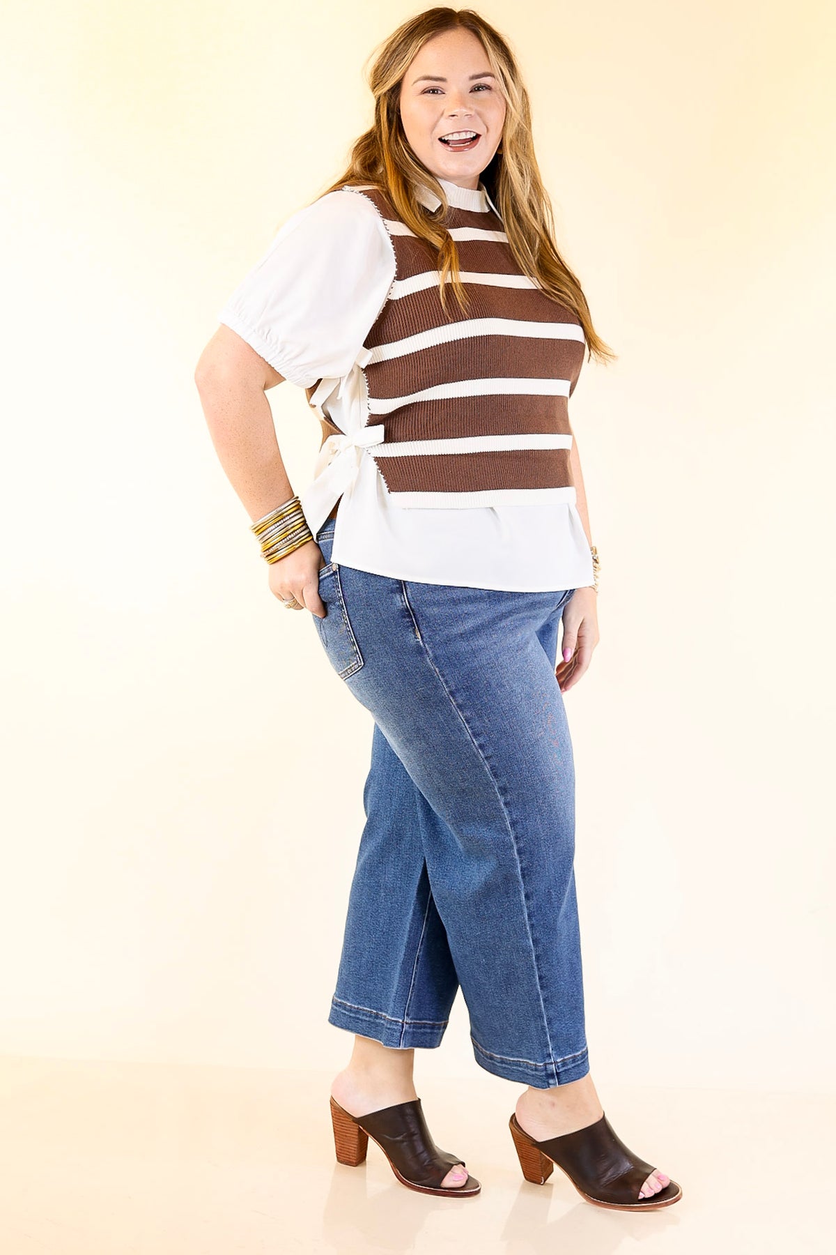 Tied Up in Style Knit Sweater with Side Ties in Chocolate Brown with Off White Stripes