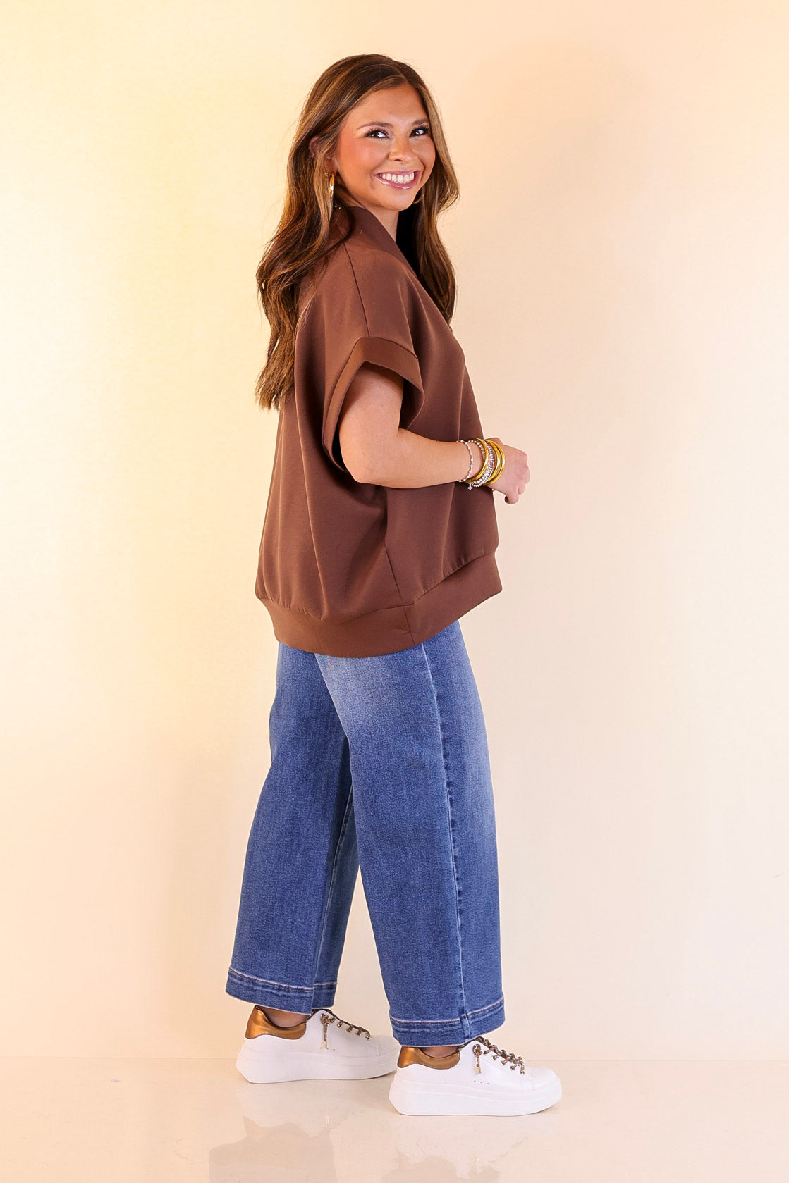 Top Priority Half Zip Collared Scuba Top in Chocolate Brown
