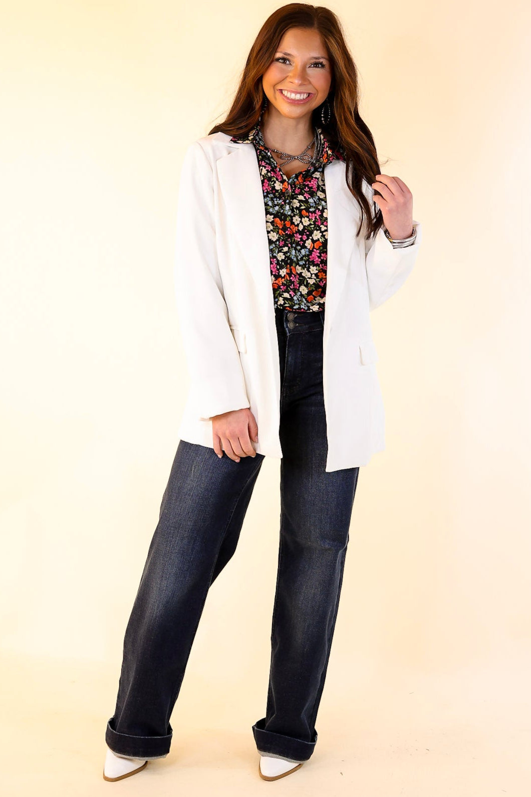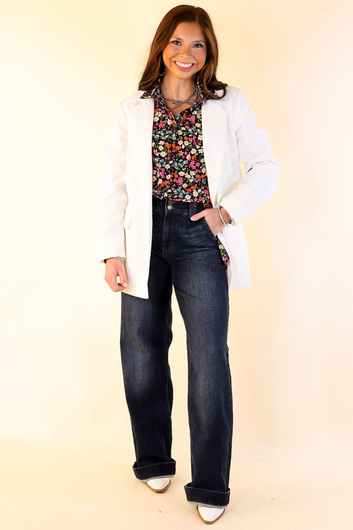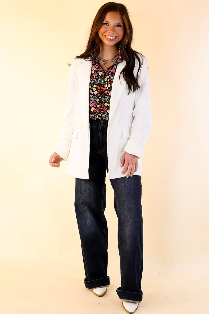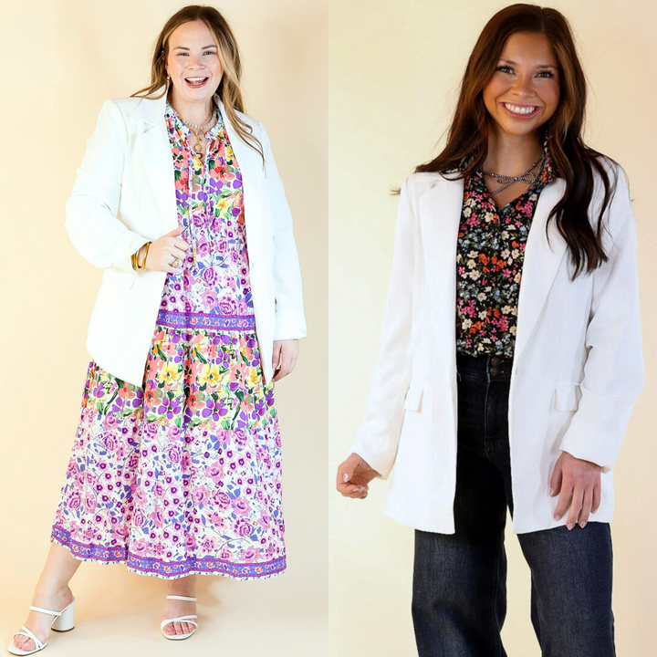 This chic blazer is everything you need for a day at the office or a night on the town. Get the boss babe look with its long sleeves, collared neckline, single button front, and pockets. Pair it with a bodysuit and slacks for a fun look!