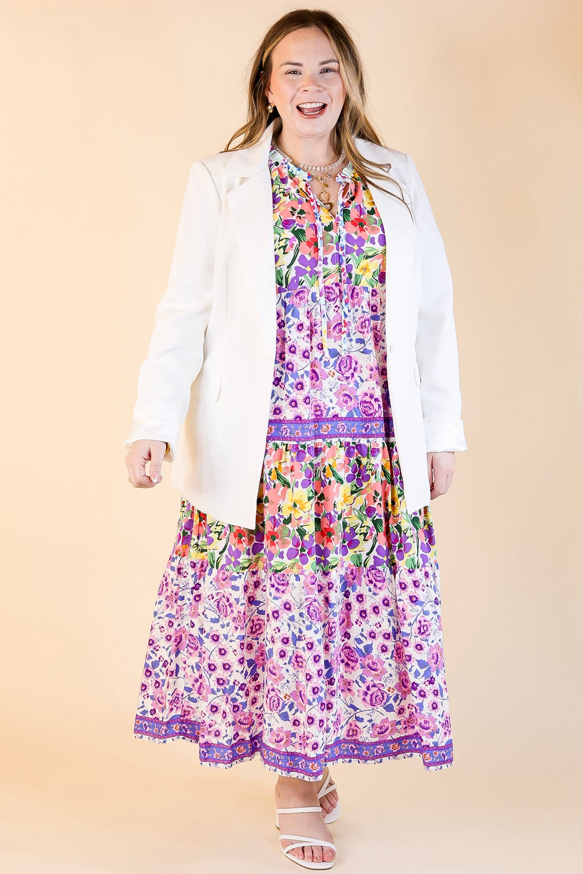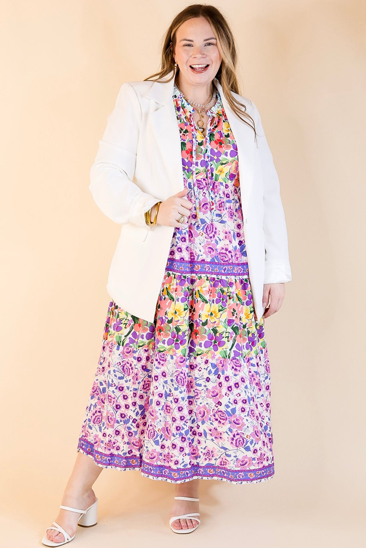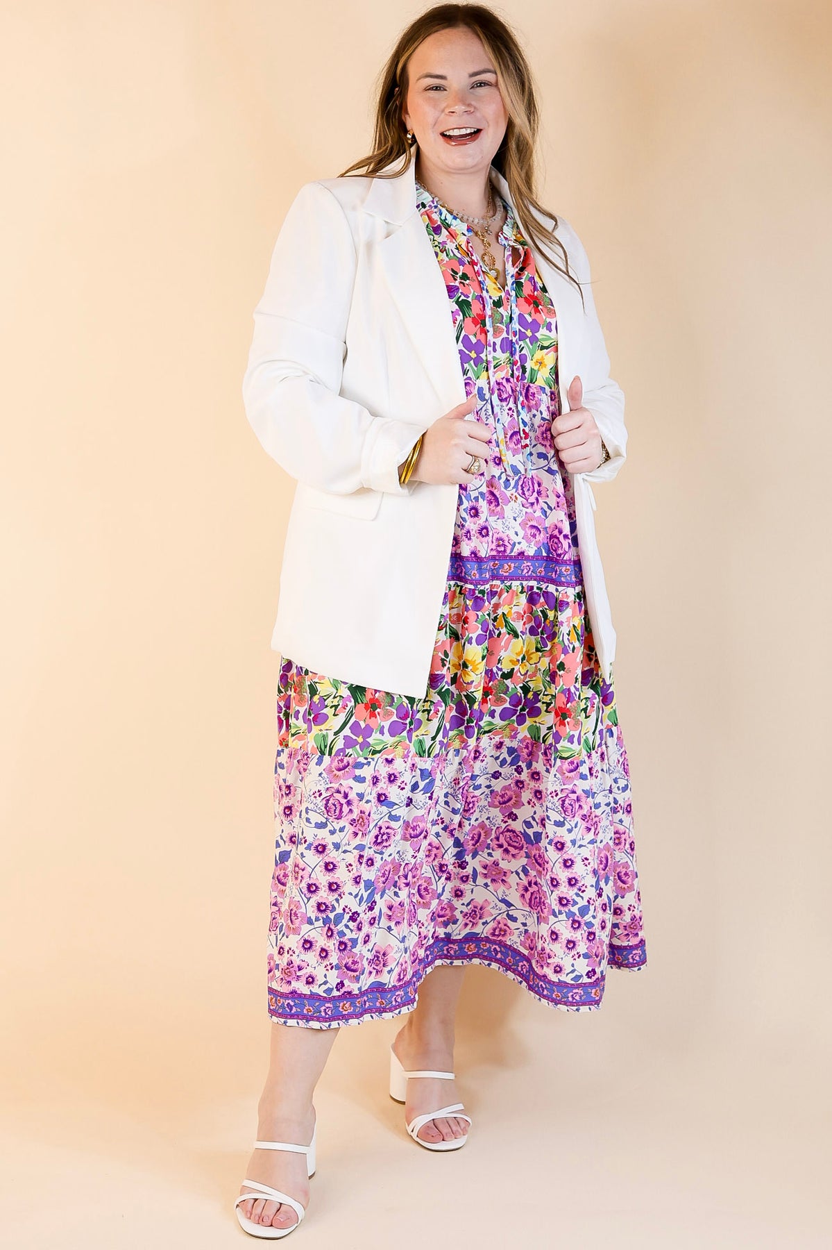 This chic blazer is everything you need for a day at the office or a night on the town. Get the boss babe look with its long sleeves, collared neckline, single button front, and pockets. Pair it with a bodysuit and slacks for a fun look!
