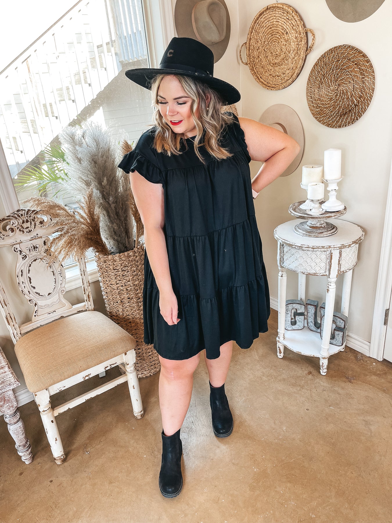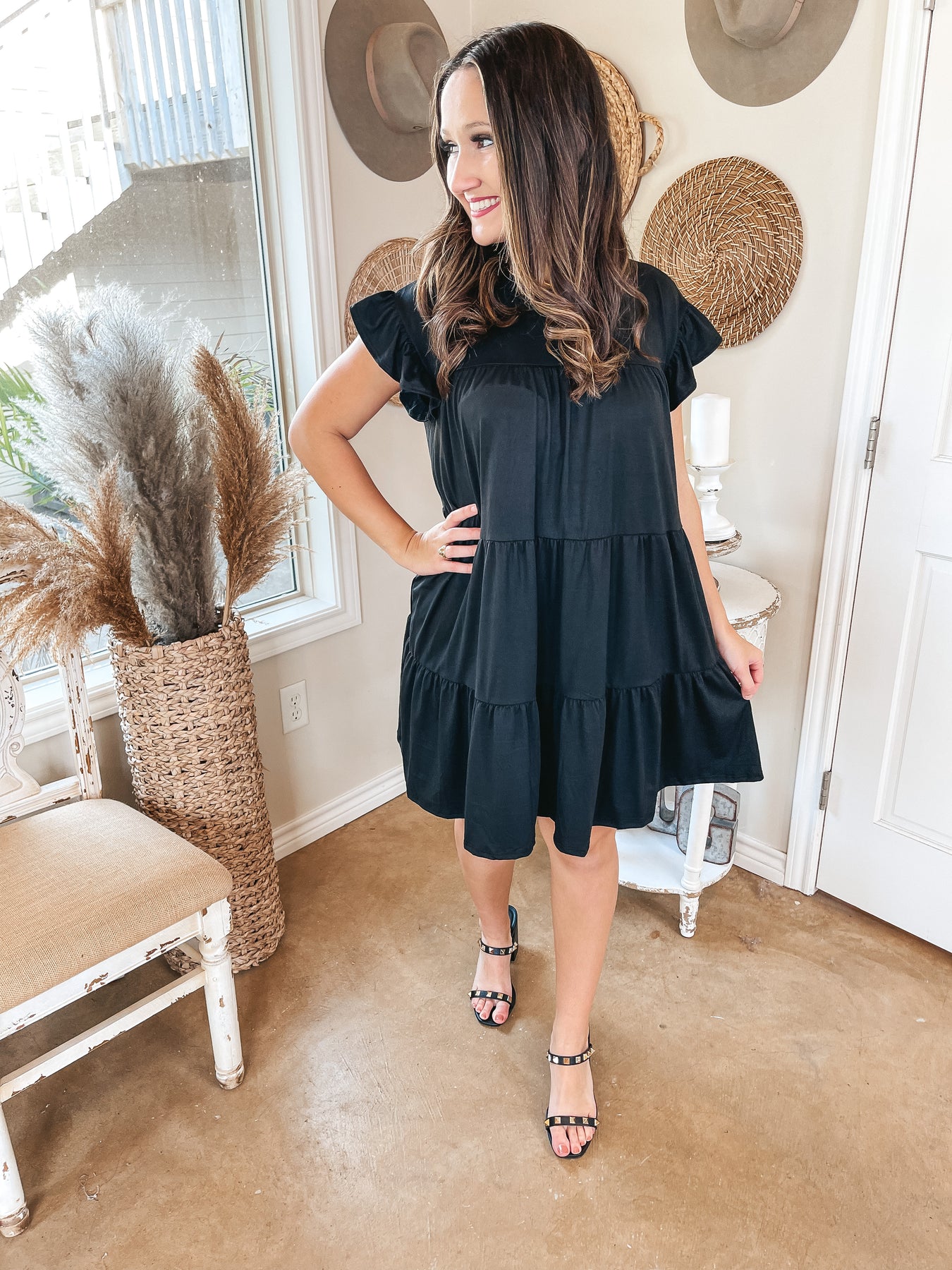 Last Chance Size Small | Instant Attraction Solid Ruffle Tiered Dress in Black