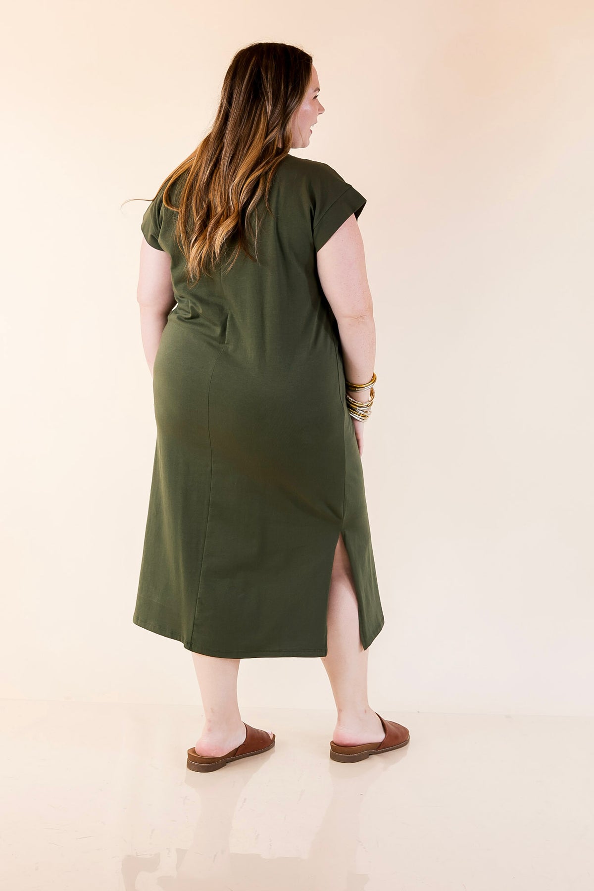 Effortlessly Lovely Short Sleeve Midi Tee Shirt Dress in Olive Green