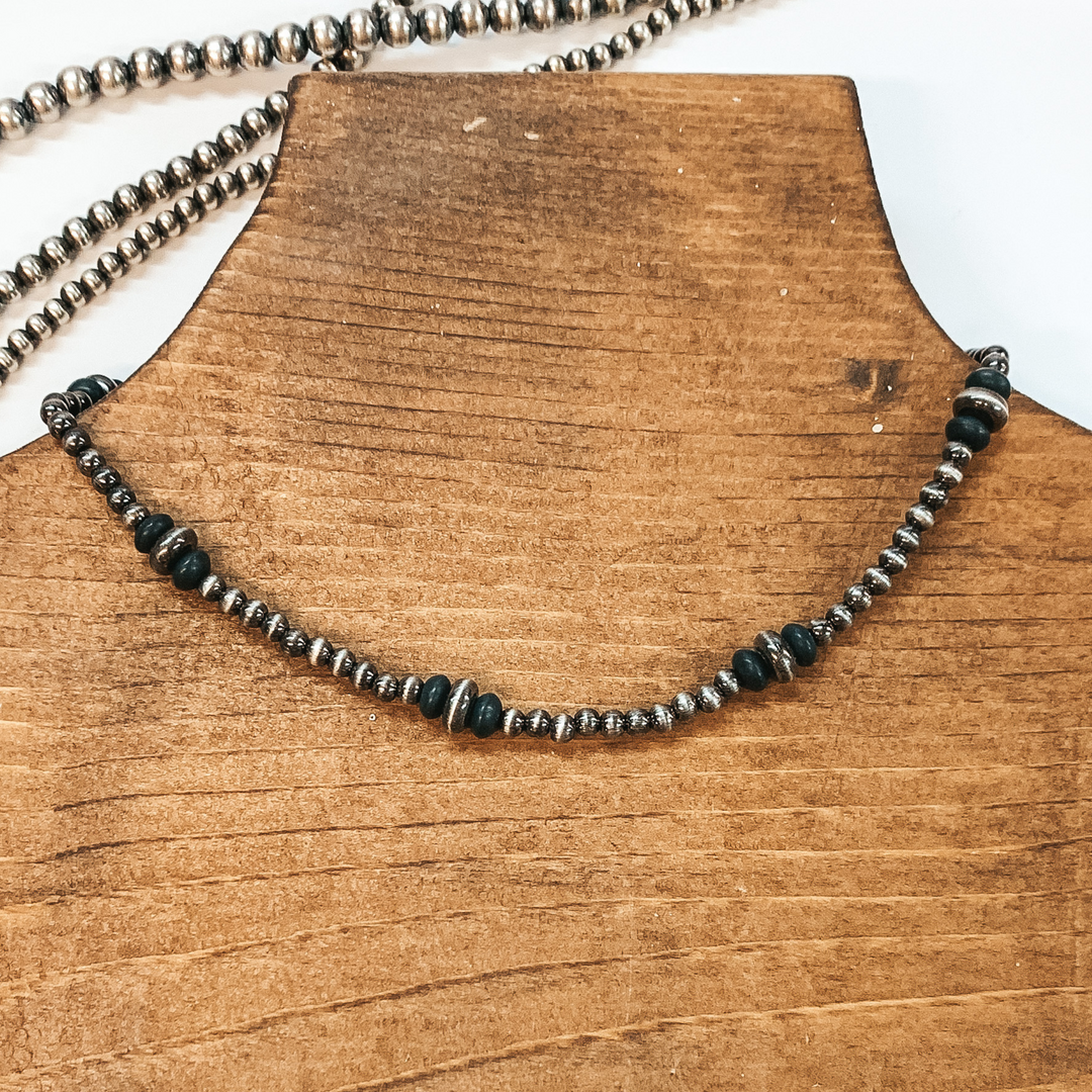 4mm Faux Navajo Pearl Silver Tone Choker Necklace with Saucer Bead Spacers in Black