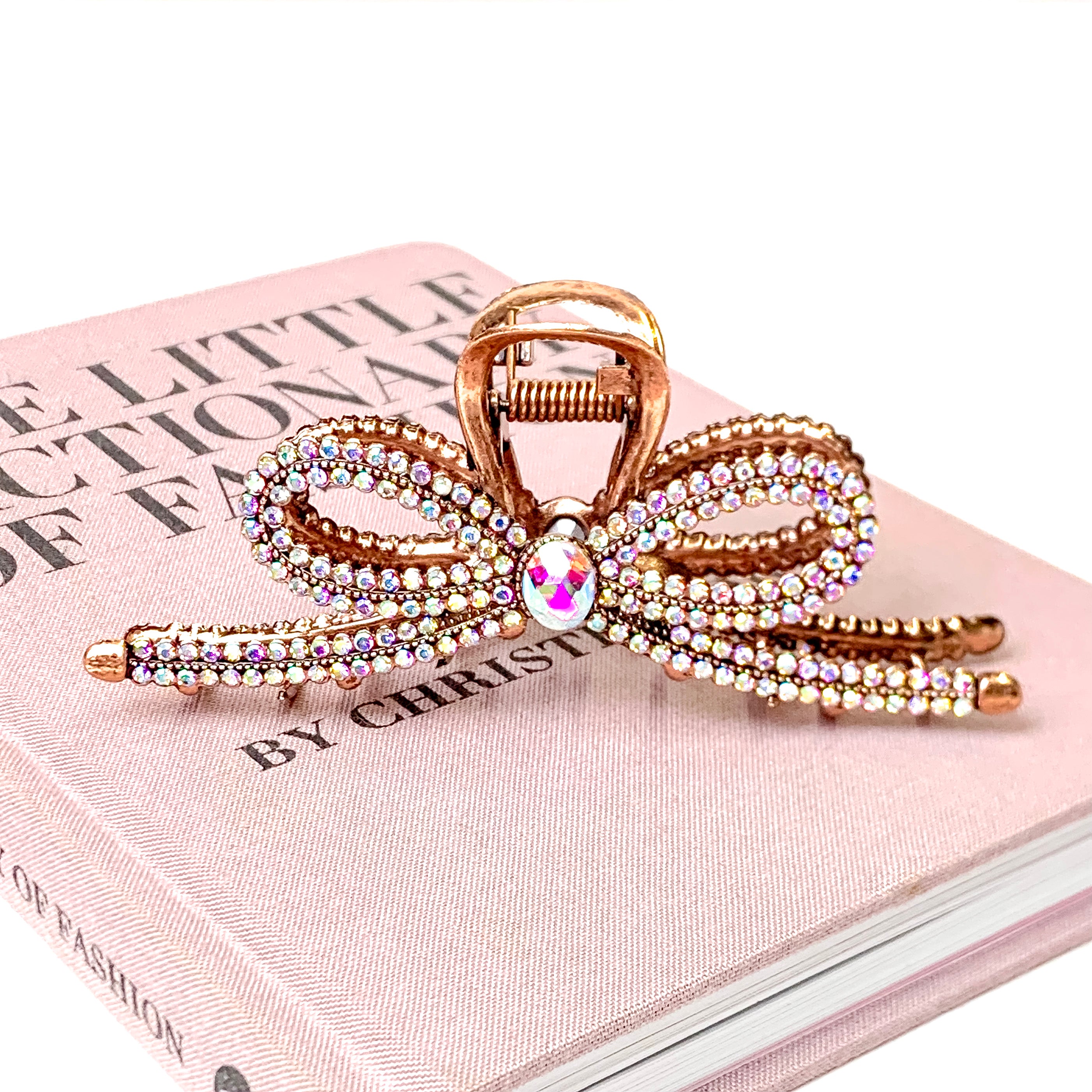 AB Crystal Embellished Ribbon Shaped Metal Hair Clip in Copper