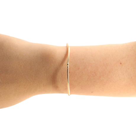 Embrace elegance with the Beaded Blondes Mollie Bar Bracelet. This 3mm bangle features delicate gold bars, handstrung with 14K gold filled and elastic string in College Station, Texas. Waterproof, workout proof, and tarnish proof, it adds a touch of sophistication to any outfit.