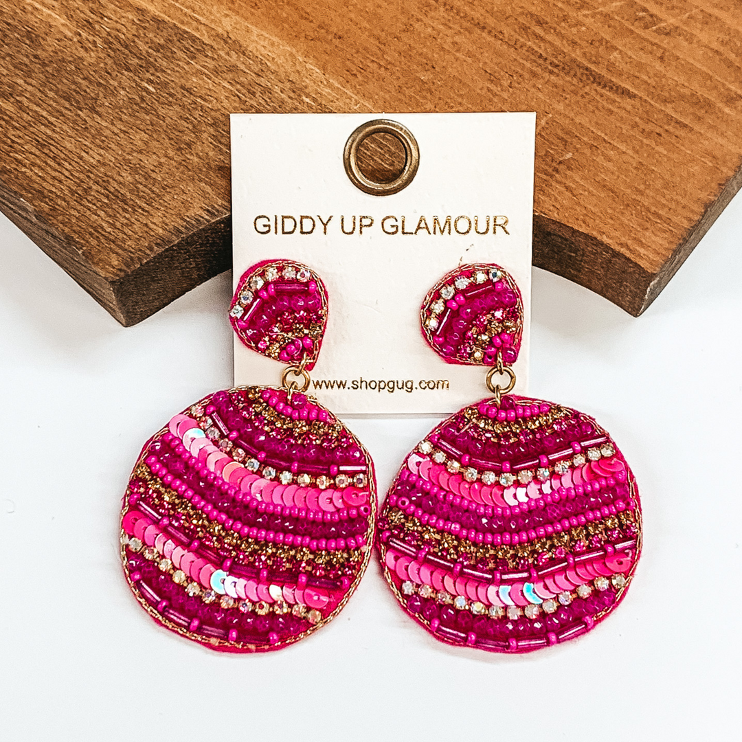 Beaded Circle Drop Earrings in Fuchsia Pink