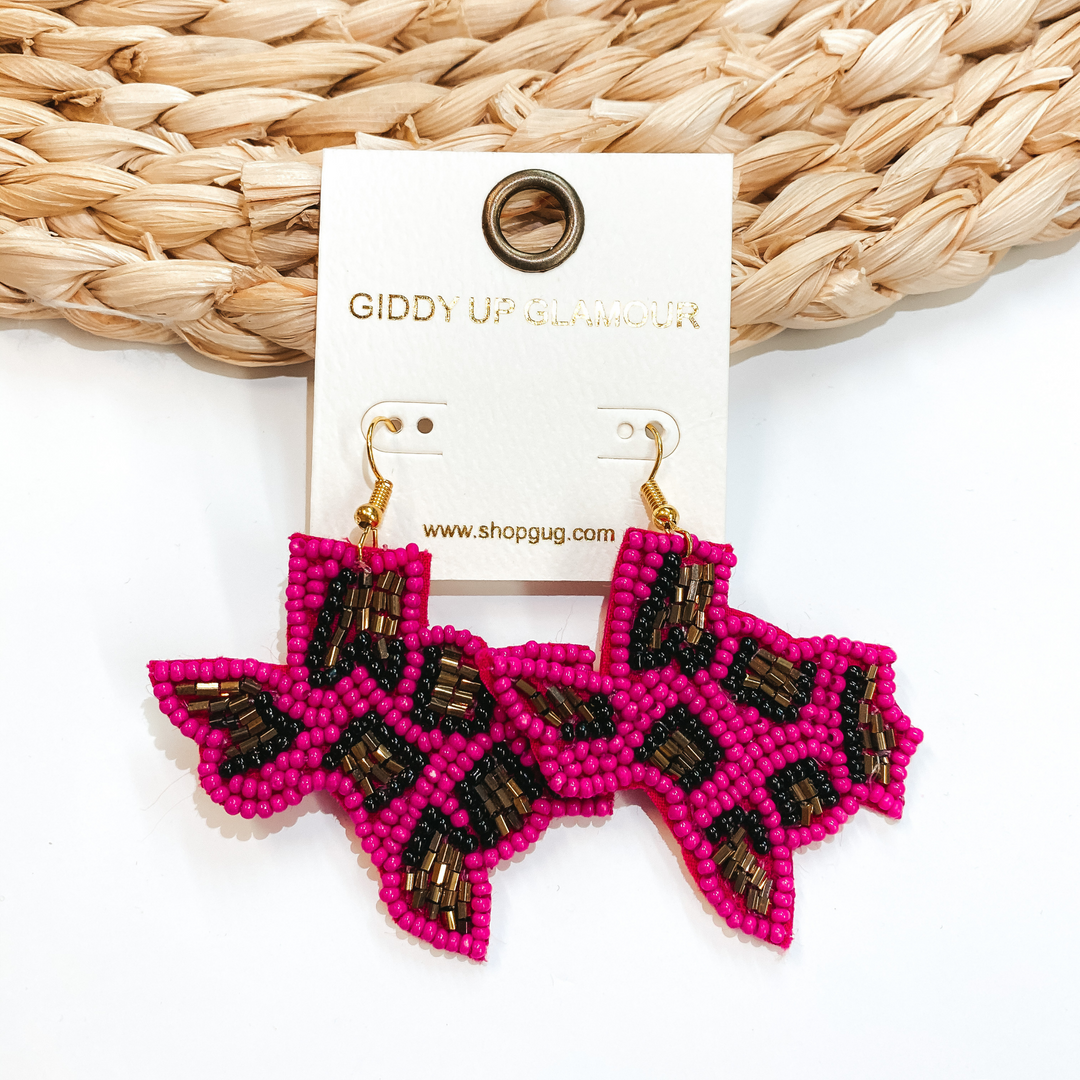 Beaded Leopard Print Texas Teardrop Earrings in Pink