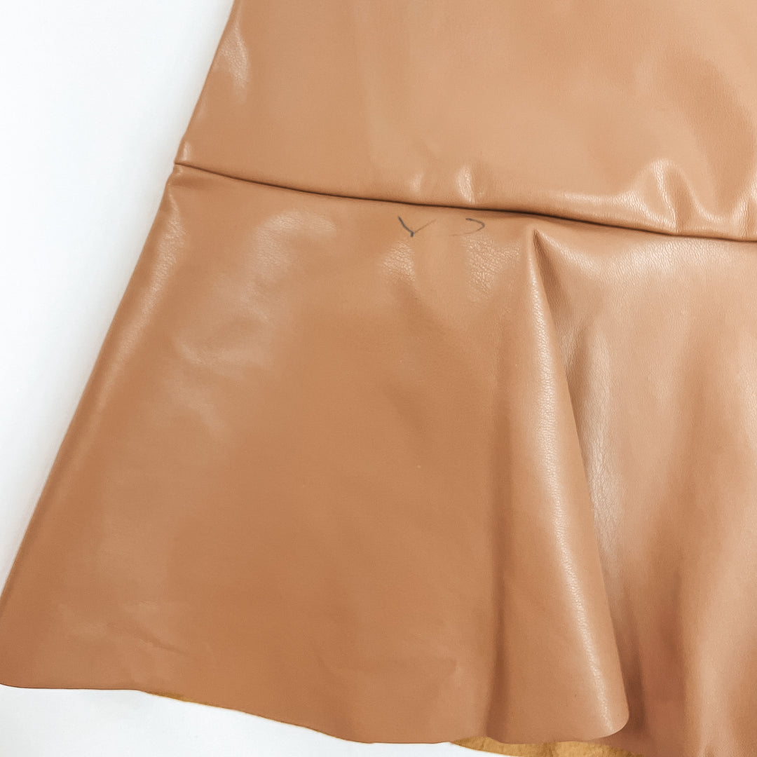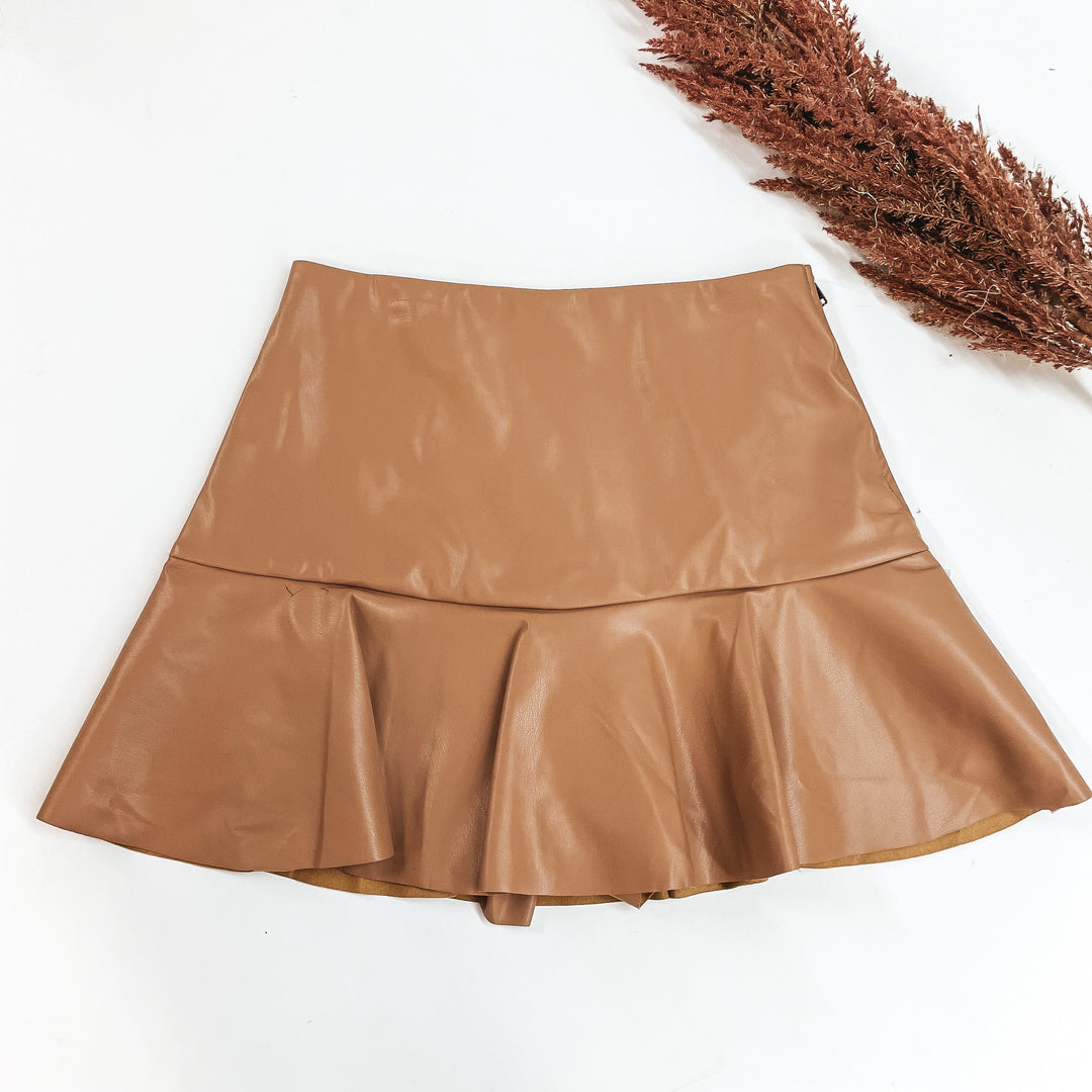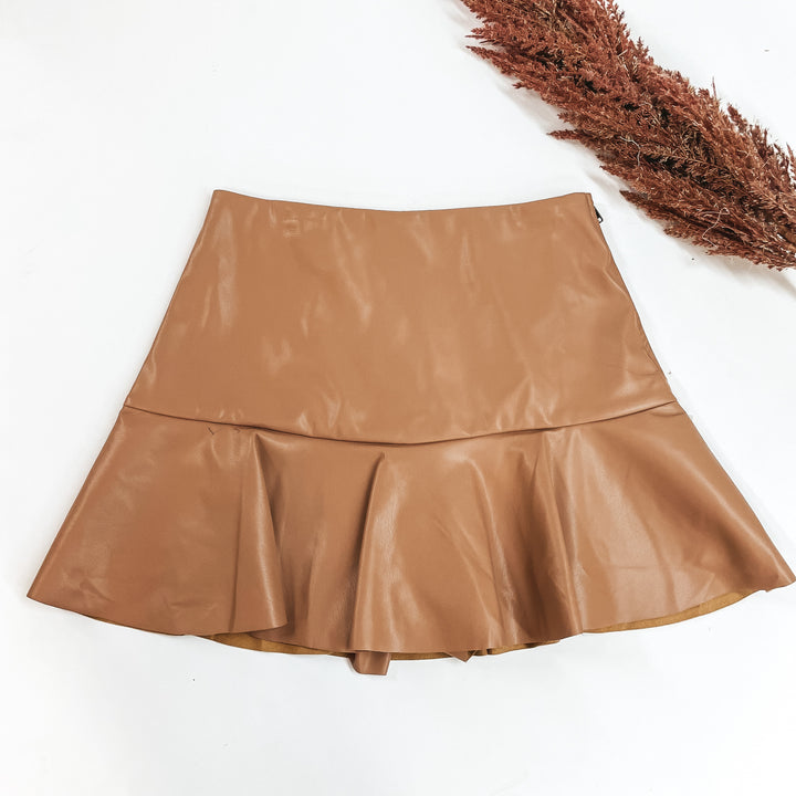 Blemished Skort Size Small | Dose of Dreamy Faux Leather Ruffle Mini Skort in Taupe