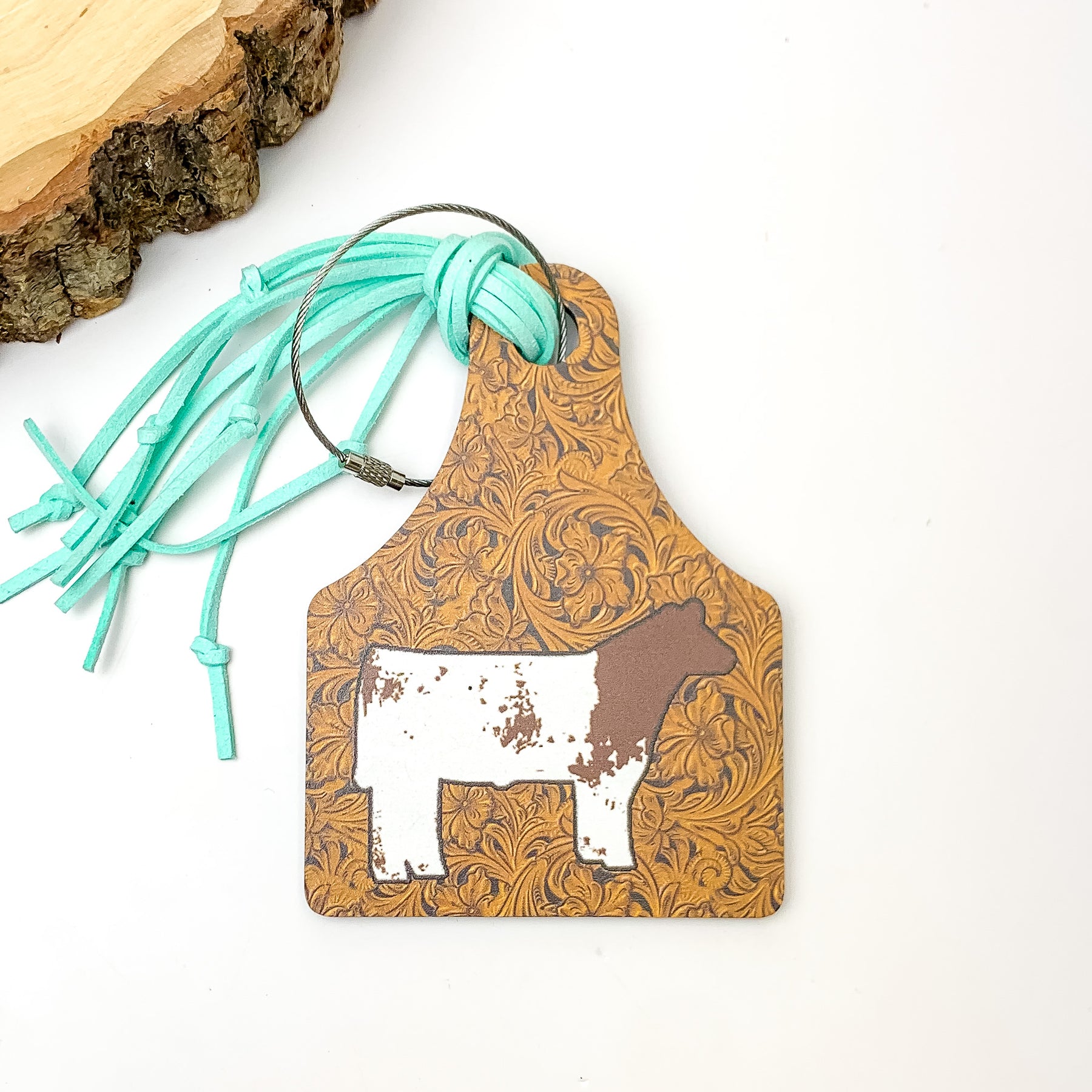 Make sure your bag stands out with this charming brown and turquoise luggage tag with stylish cow print! Contact information spaces on the back of the tag.