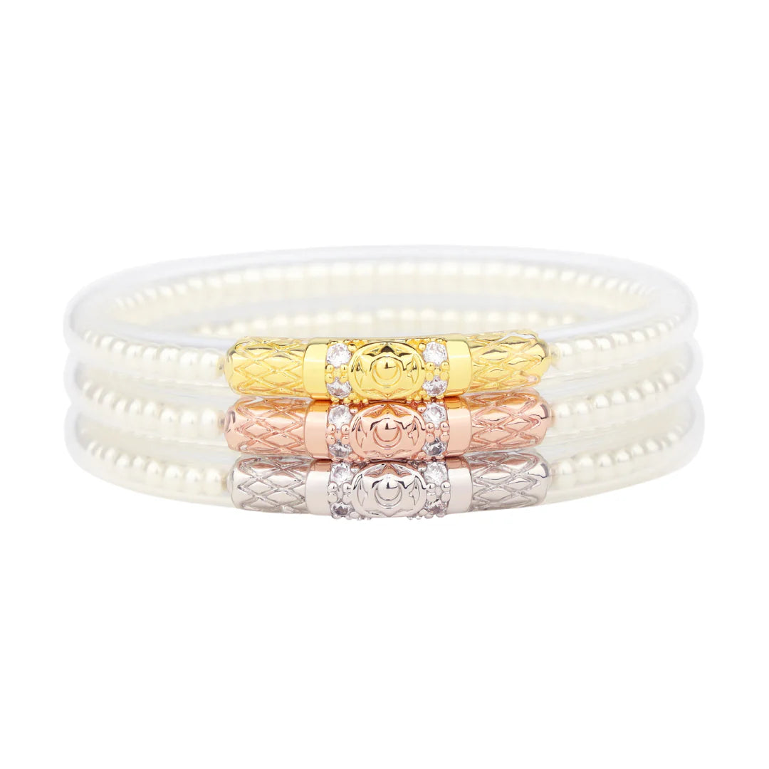 BuDhaGirl | Set of Three | Three Queens All Weather Bangles in White Pearl