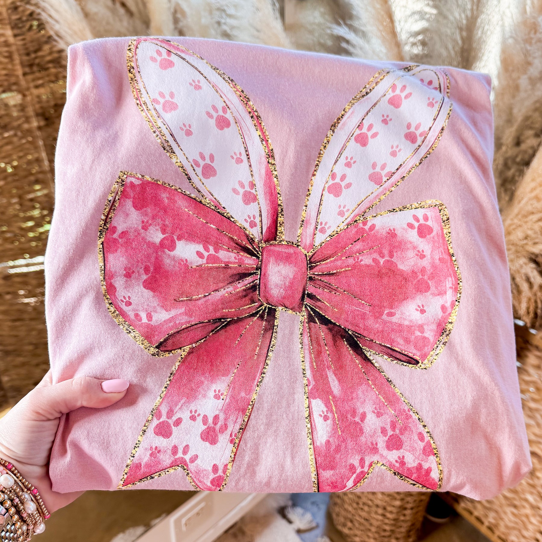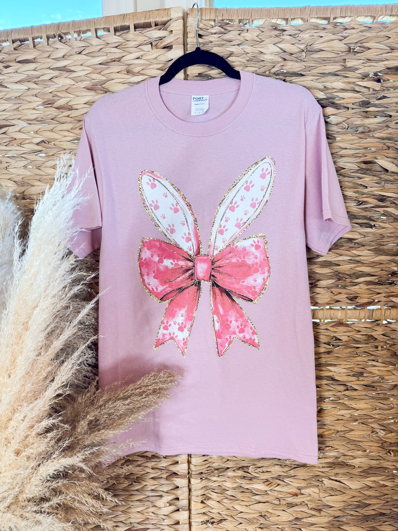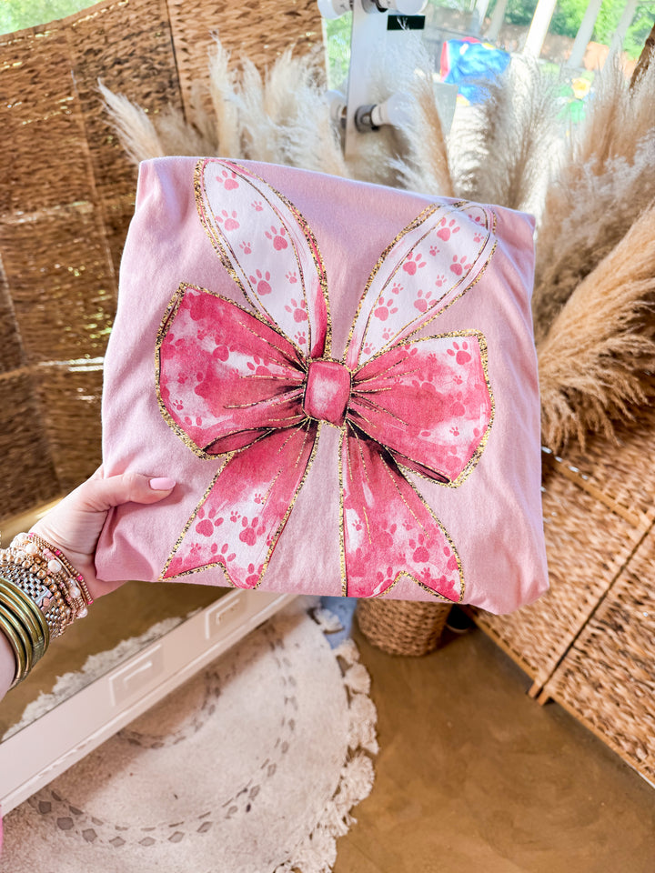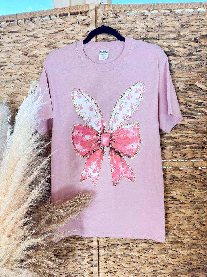 Bunny Ears and Bow Short Sleeve Graphic Tee in Pale Blush Pink