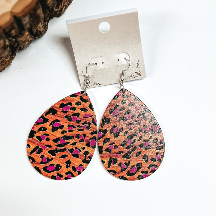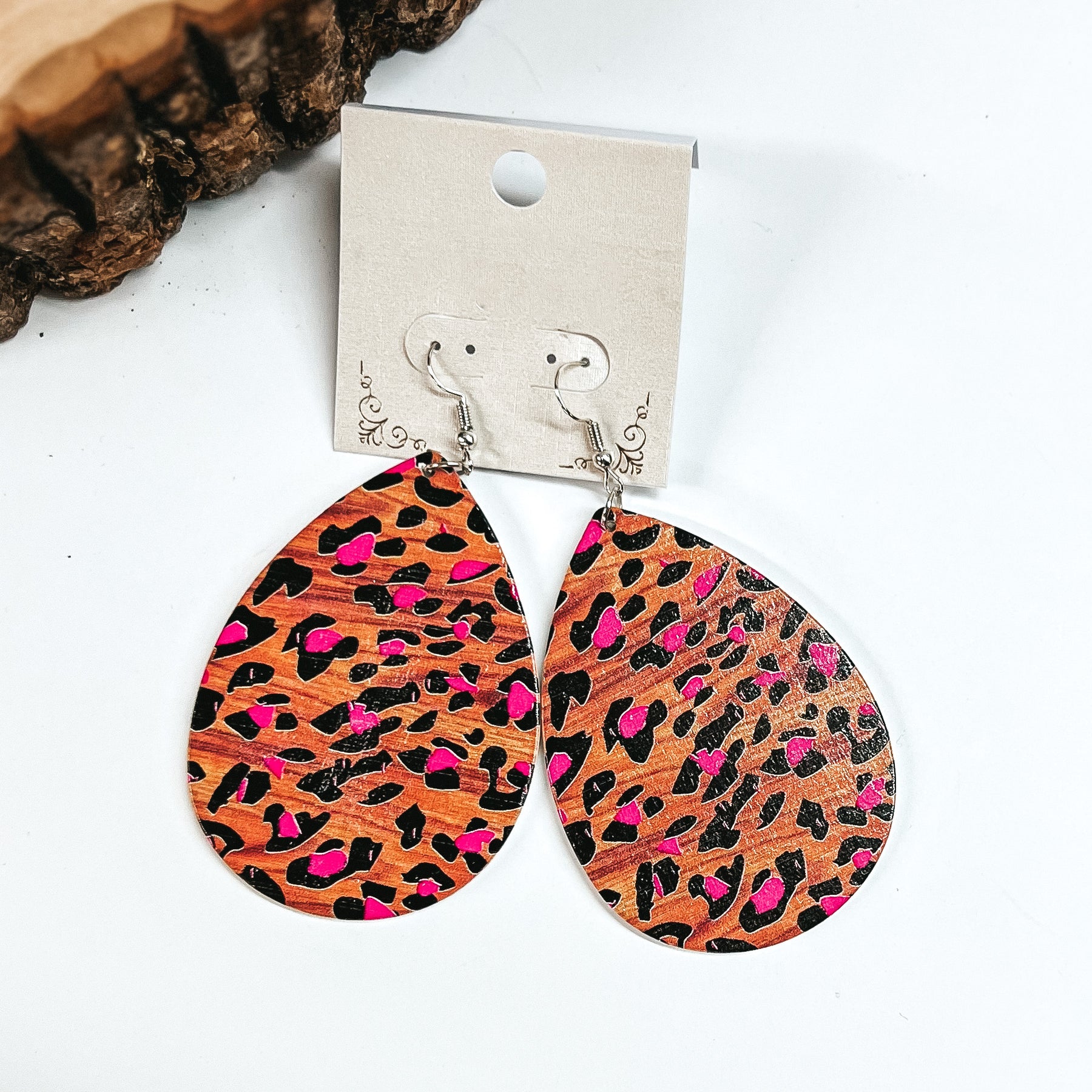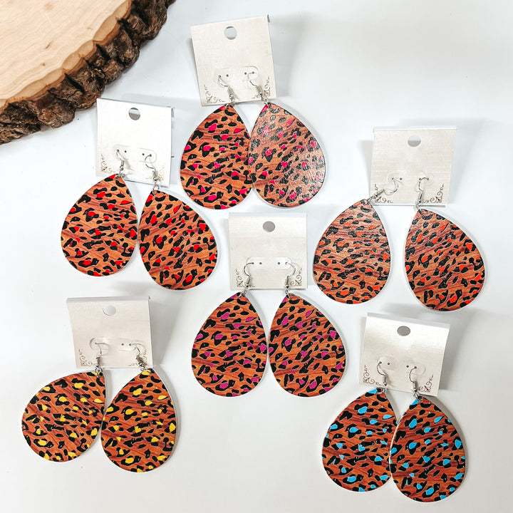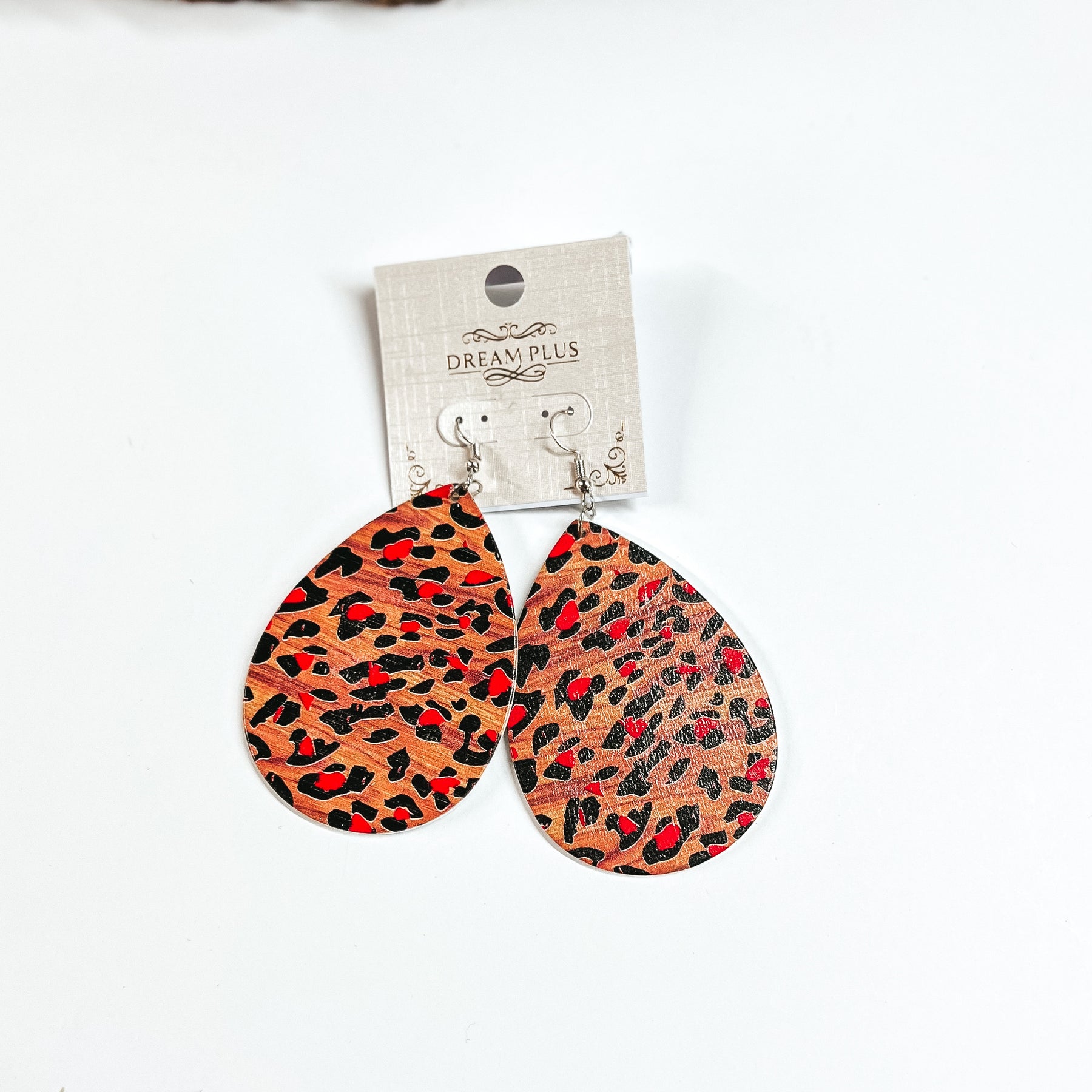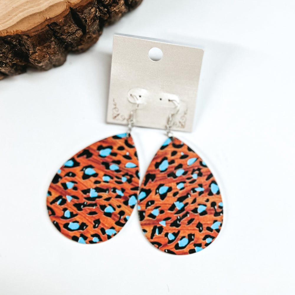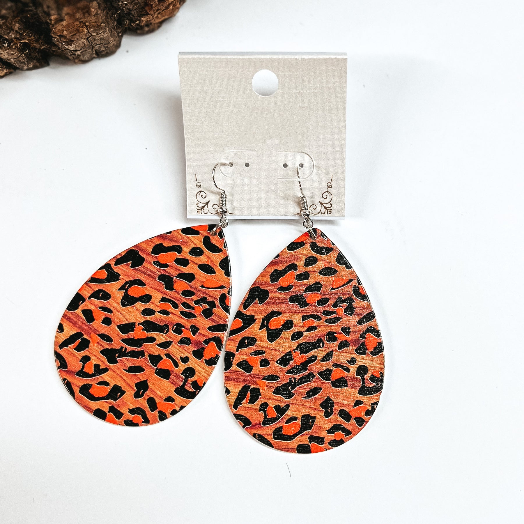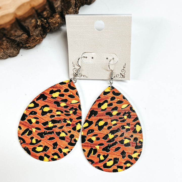 Buy 3 for $10 | Leopard Teardrop Faux Wood Grain Earrings