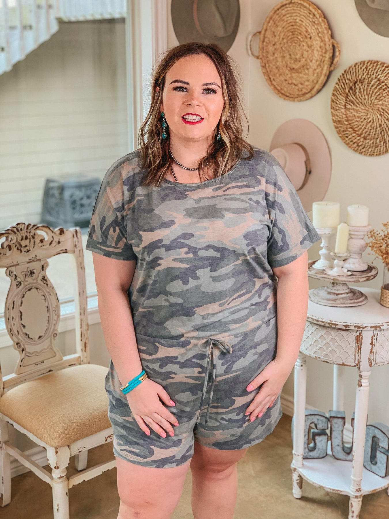 Last Chance Size 3XL | Let Me Loose Short Sleeve Drawstring Waist Tee Shirt Romper in Camouflage
