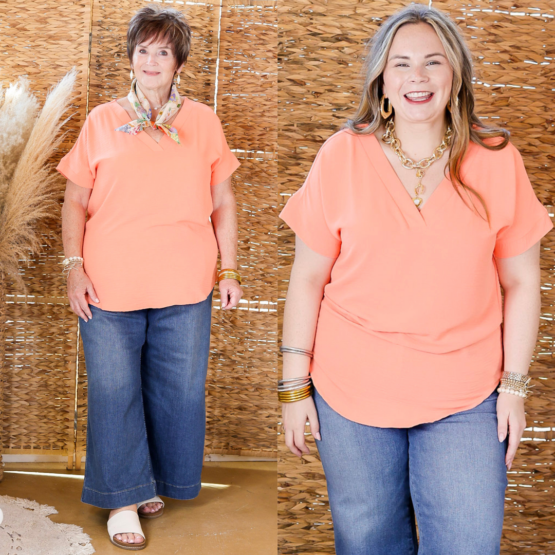 Cause To Celebrate V Neck Short Sleeve Top in Coral Orange