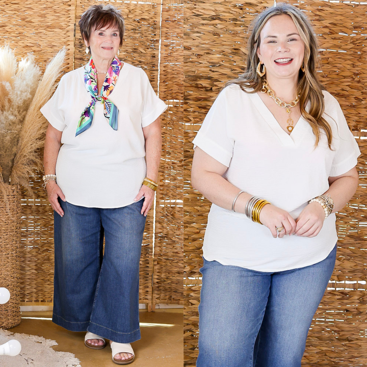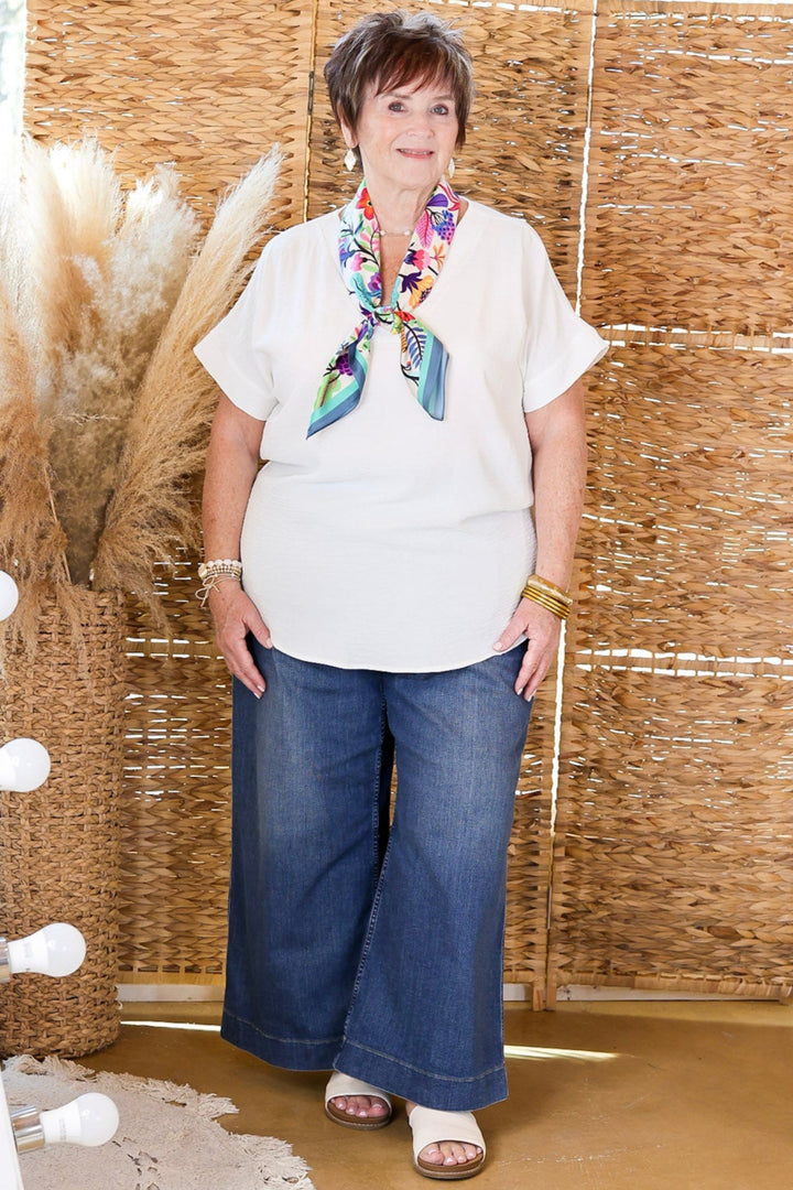 Cause To Celebrate V Neck Short Sleeve Top in Off White