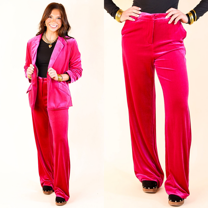 Chic Arrival Velvet Trouser Pants in Fuchsia Pink