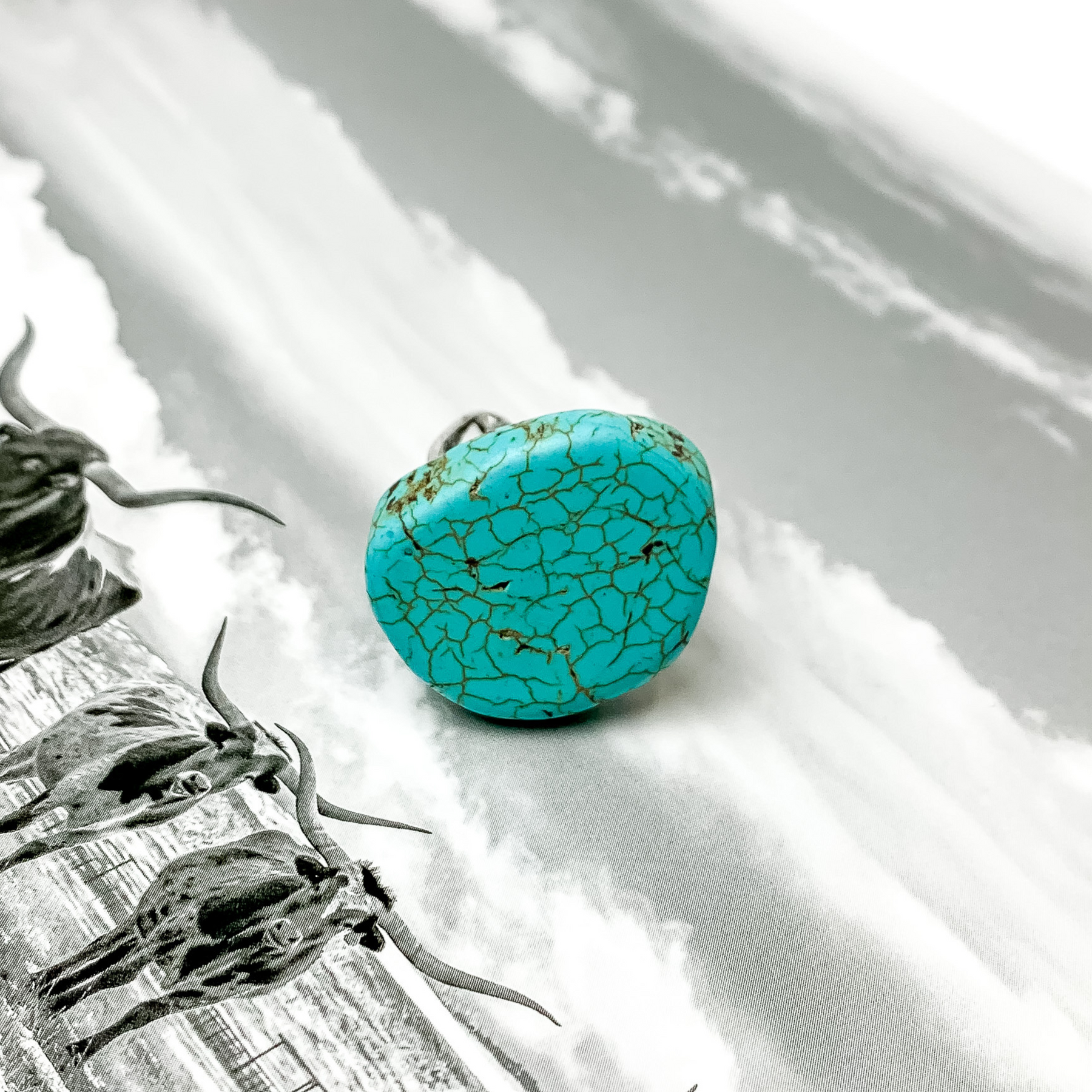 One size, this ring is adjustable. Each ring is also unique, every stone is different.