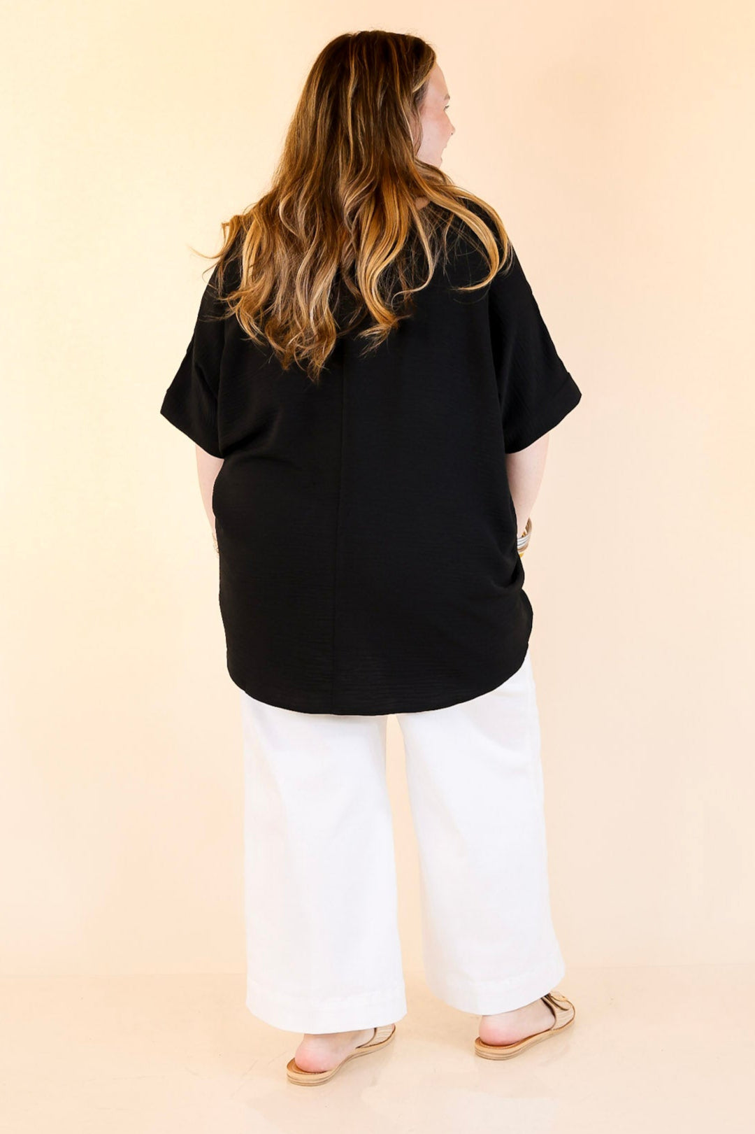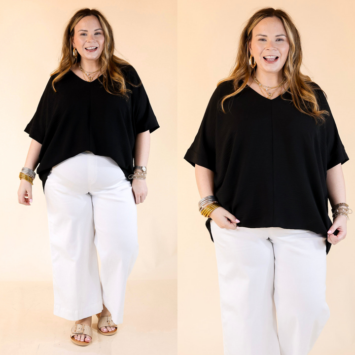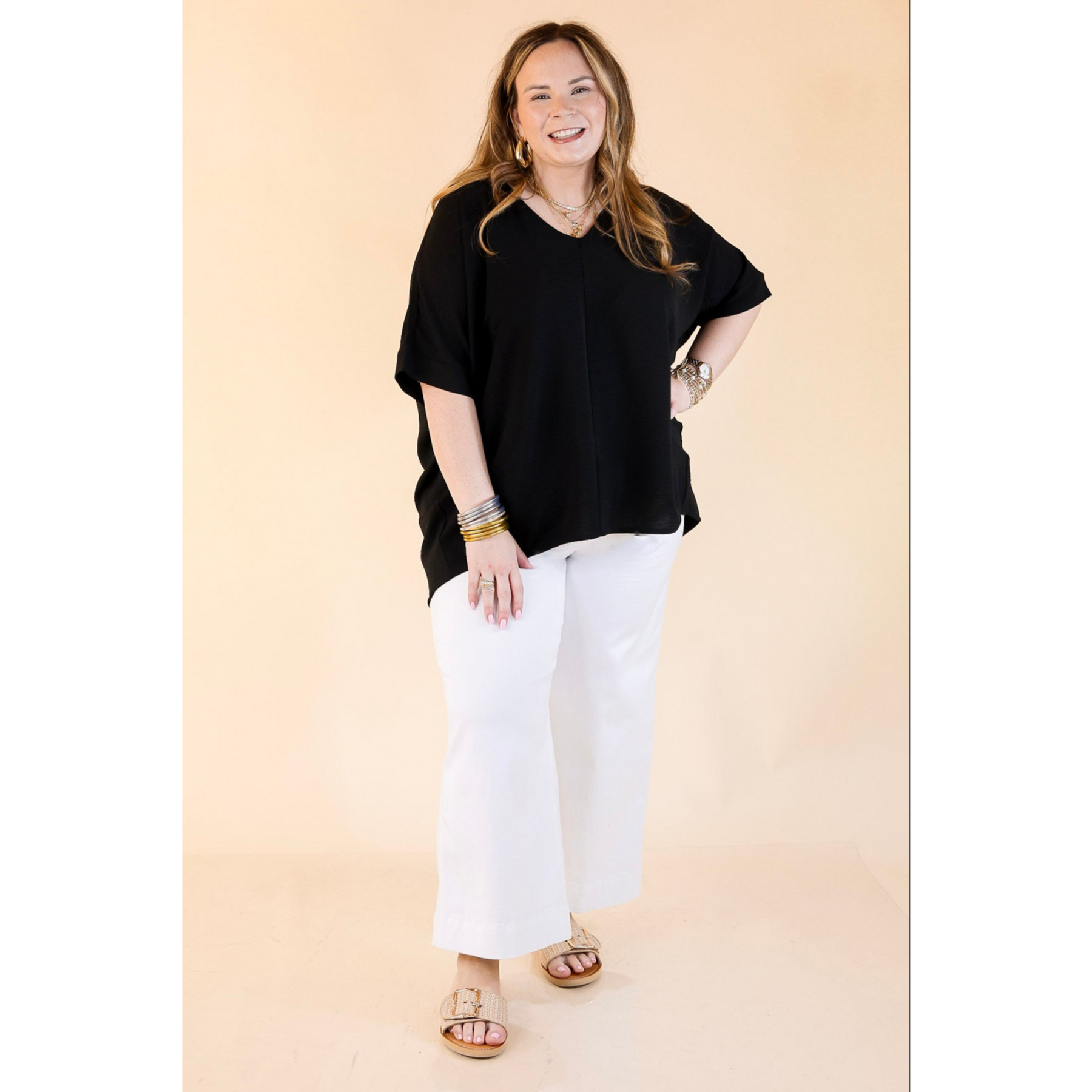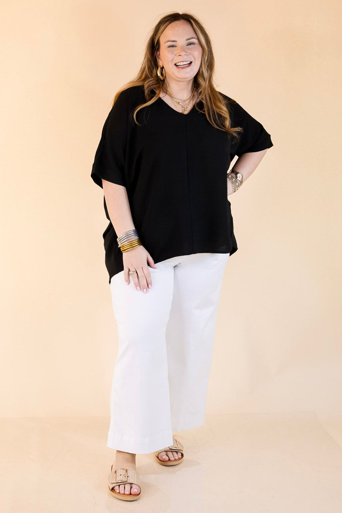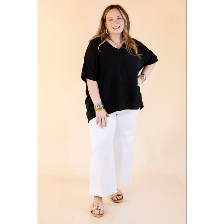 Timeless, versatile, and always on-trend—the Classically Chic top is a must-have for every wardrobe. Designed with a flattering V-neckline and short sleeves, this top strikes the perfect balance between effortless and elegant. Whether you're dressing it up with statement jewelry and tailored pants or keeping it casual with your favorite denim, this piece is made to style your way. The lightweight fabric ensures all-day comfort, making it ideal for work, weekends, and everything in between.