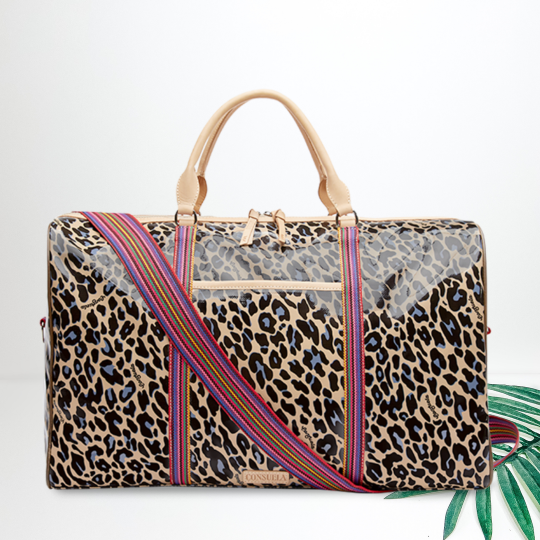 Our largest duffel style, the Weekender, is our go-to for weekends and day trips on the go. This duffel is roomy enough for all your essentials and features leather handles, an adjustable crossbody length webbing strap, two interior pockets, and two exterior pockets. If you’re looking for a TSA carry-on compatible bag, check out the Jetsetter or the Zipper Tote!