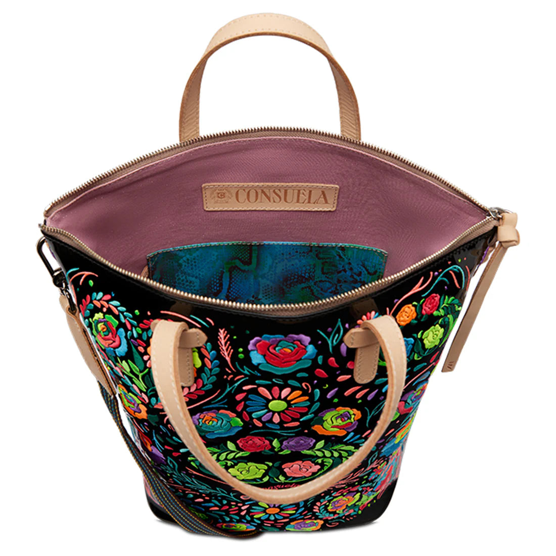 - Natural leather handles and trim