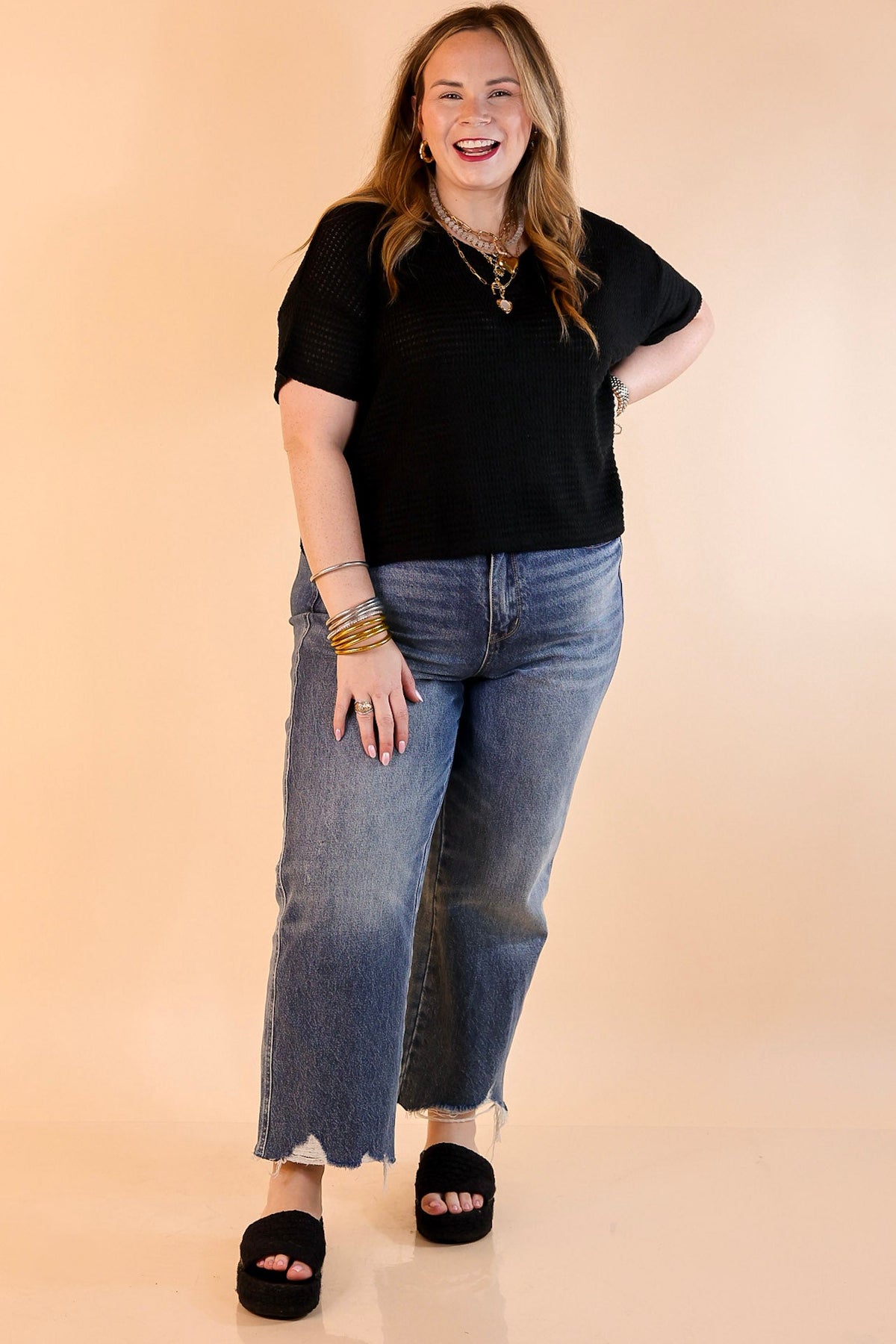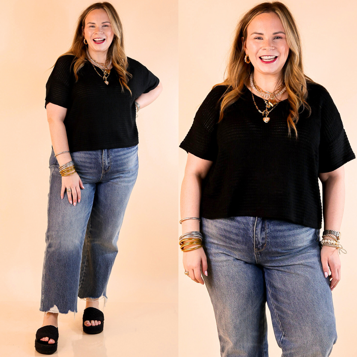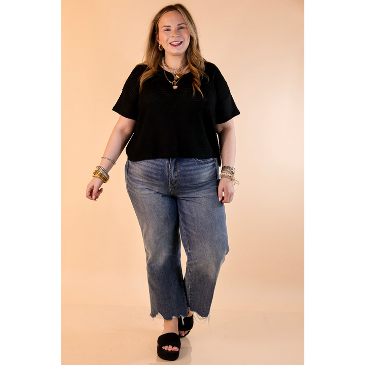 The Cool and Casual top is the perfect blend of effortless comfort and everyday style. Crafted from a lightweight knit material, this V-neck top features a relaxed fit with short sleeves, making it a go-to piece for any season. Whether you're layering it for a cozy feel or wearing it solo on warmer days, this versatile top pairs seamlessly with denim, skirts, or shorts.