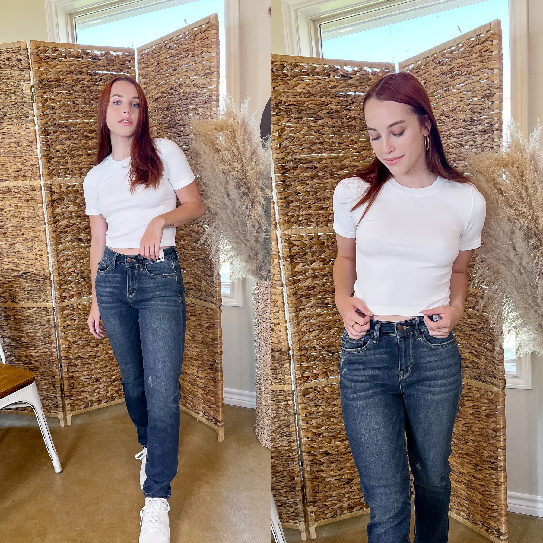 Rare Feeling Thick Banded Short Sleeve Cropped Top in White