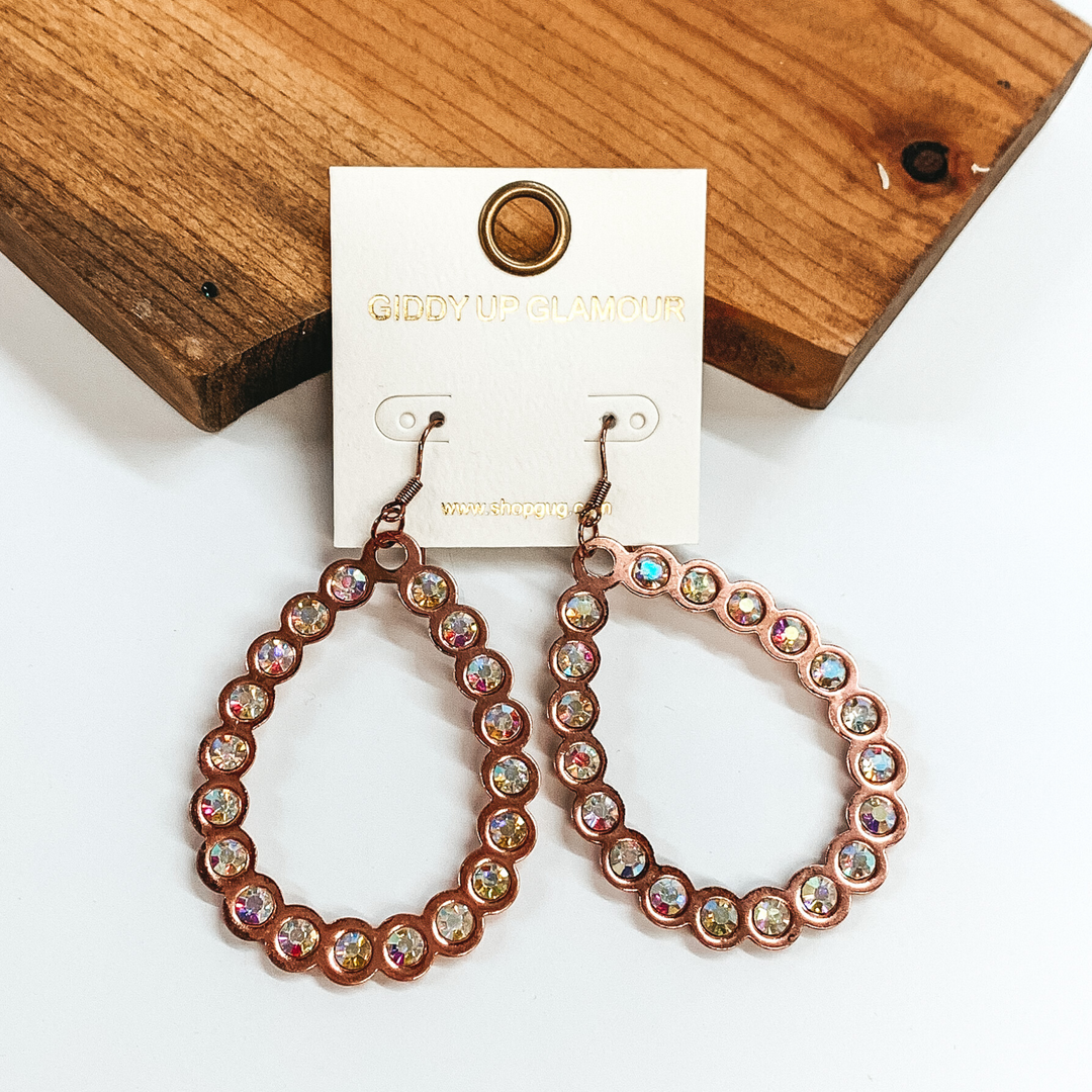AB Crystal Teardrop Outline Earrings in Copper Tone