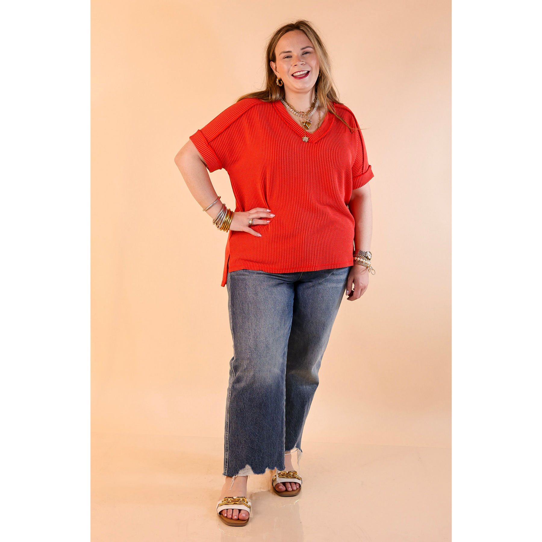 Daily Perfection Short Sleeve V Neck Top in Tomato Red