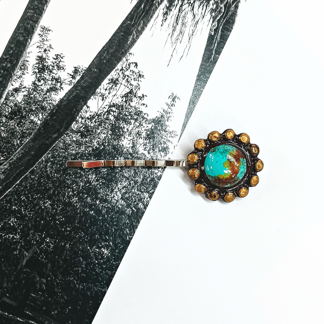 This hair pin is such a cute accessory to add to any hairstyle! It's made of polymer clay and hand painted to seem like natural turquoise.