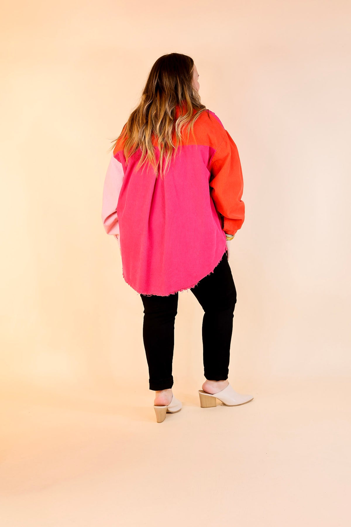 Down The Street Color Block Corduroy Jacket in Pink and Red