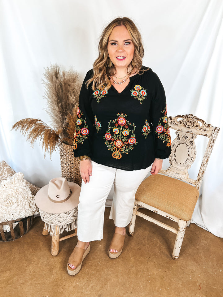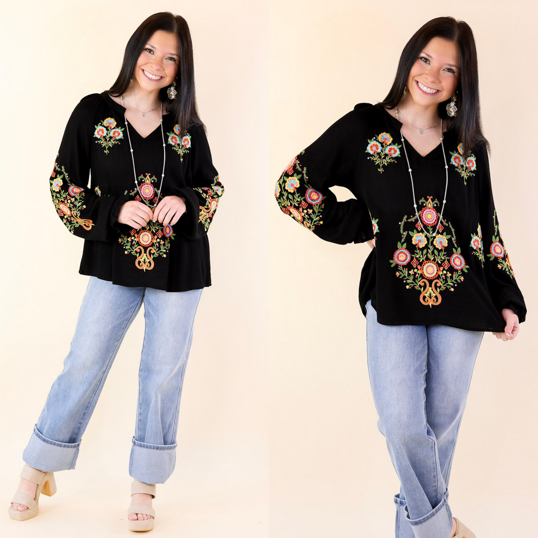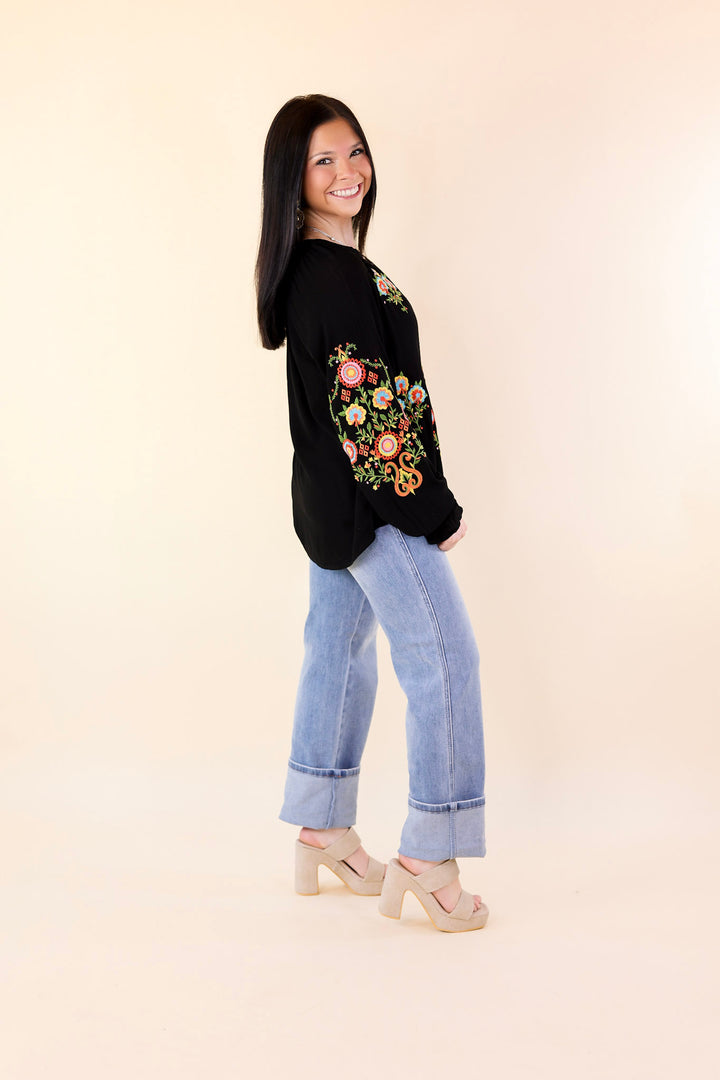 Dreamy Destination Floral Embroidered Long Sleeve Top in Black