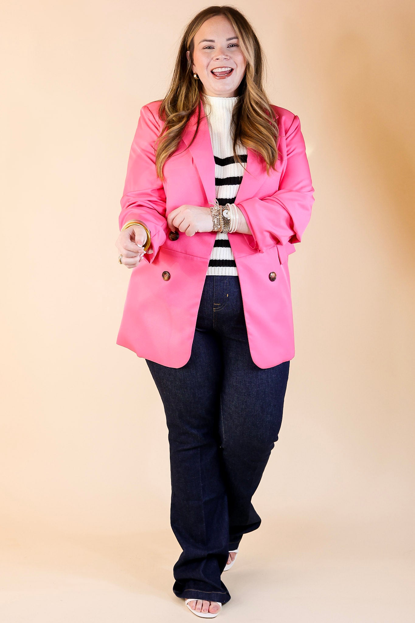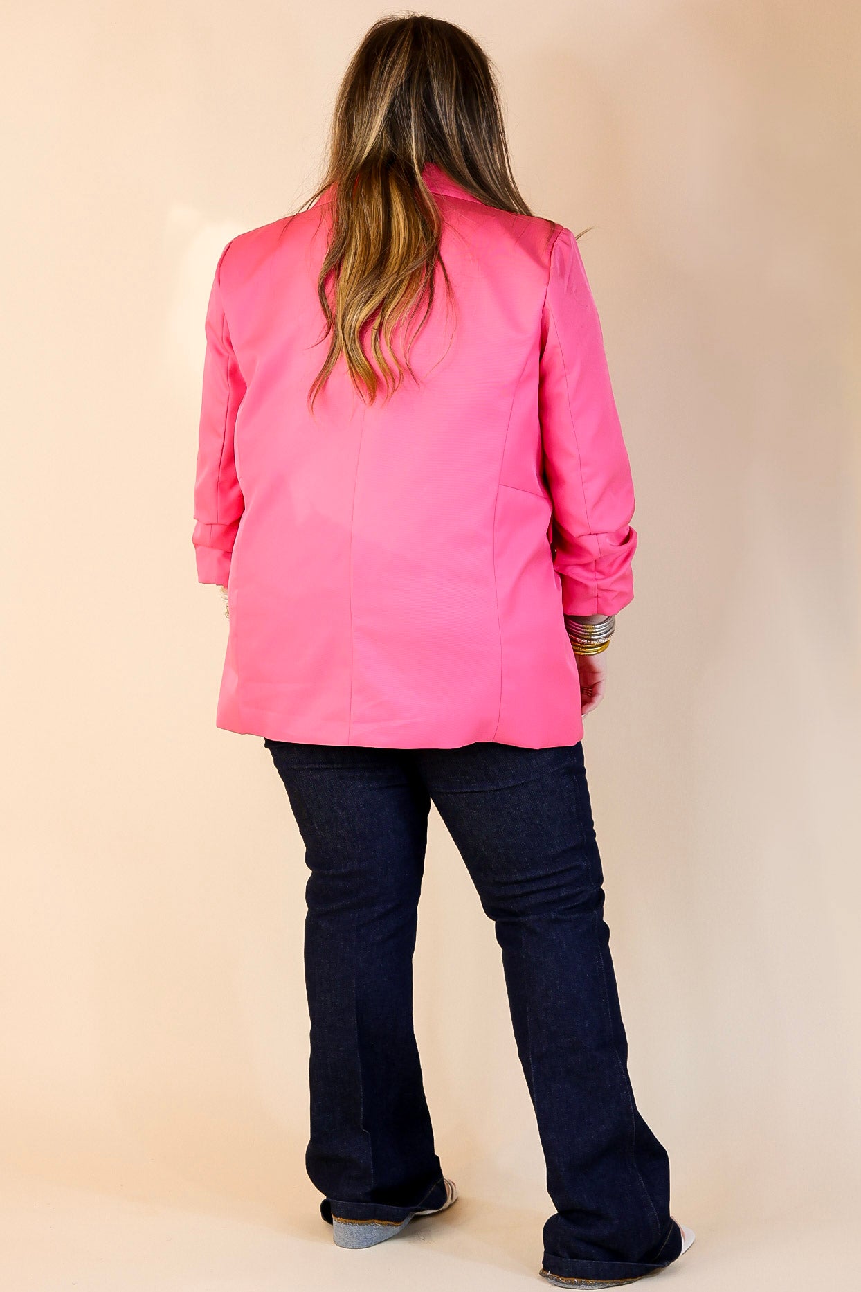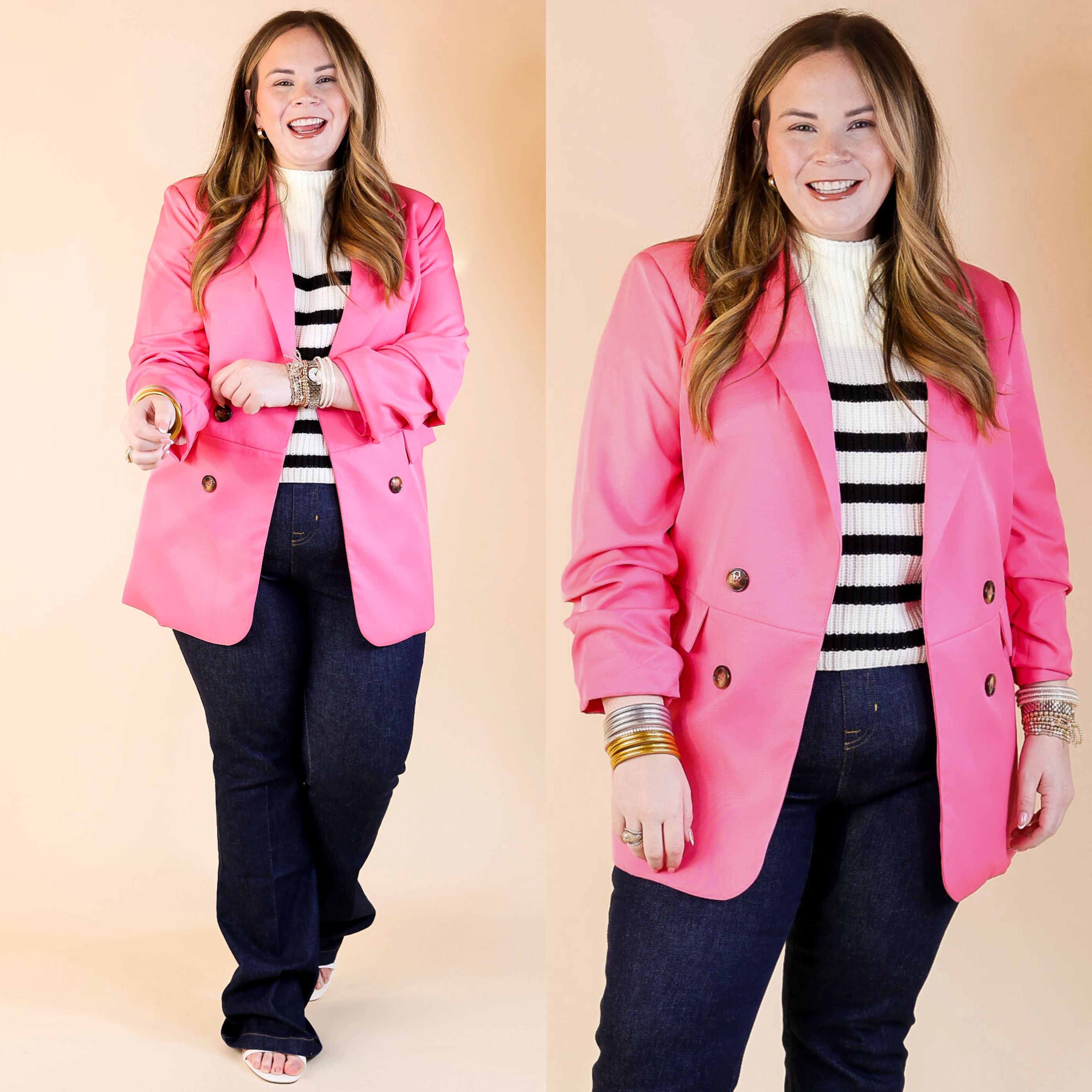 Editors Choice 3/4 Sleeve Double Button Blazer in Hot Pink