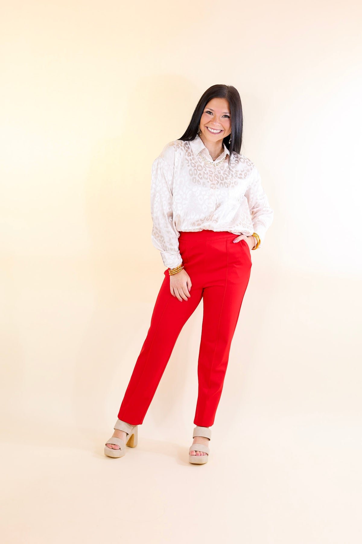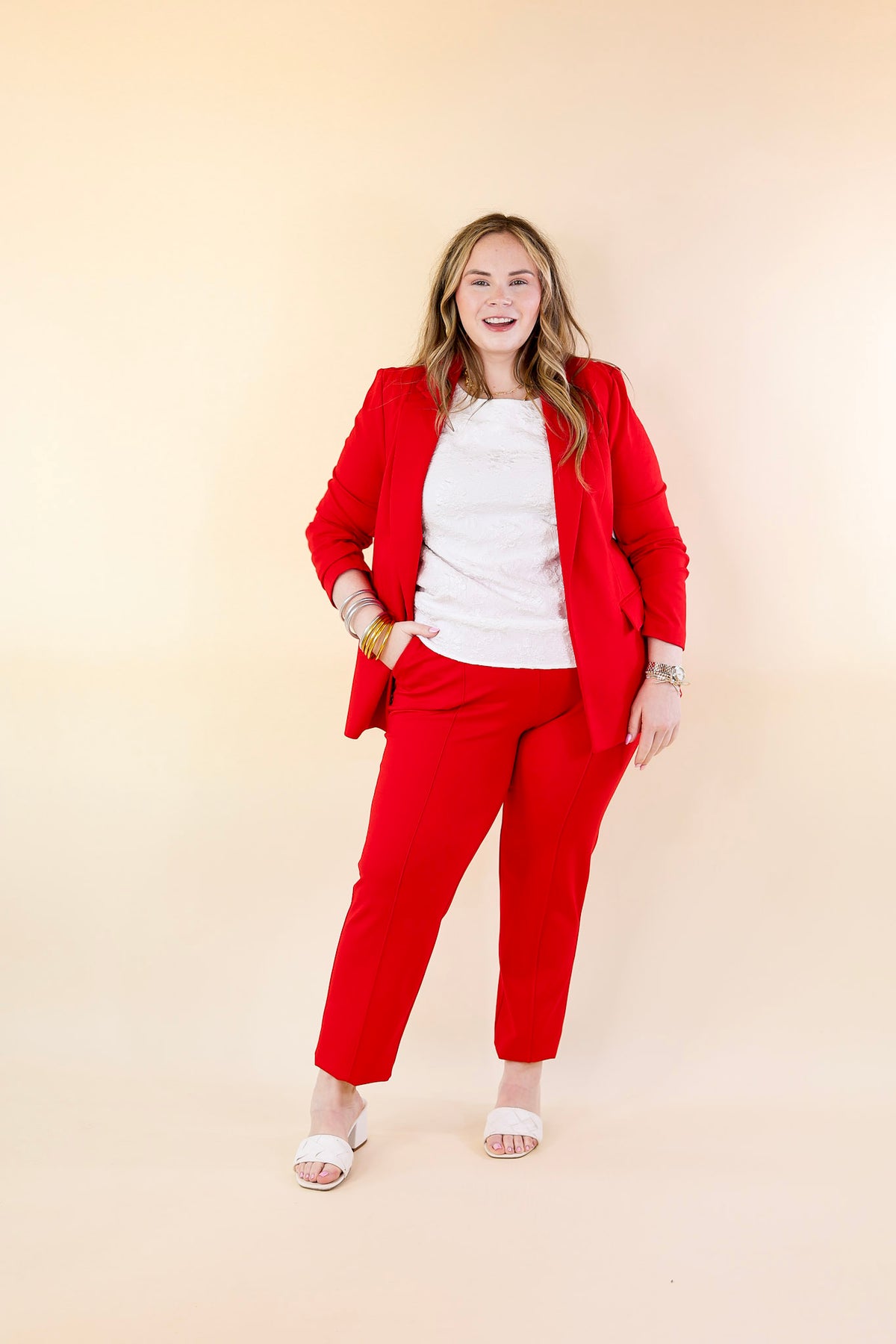 Elegant Ensemble Trouser Pants in Scarlet Red