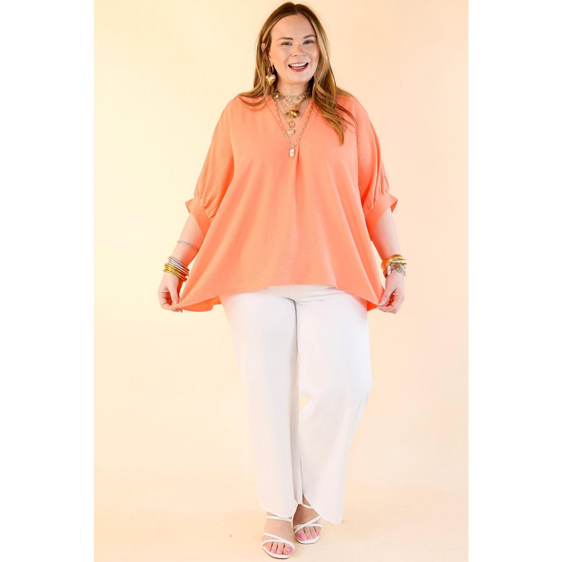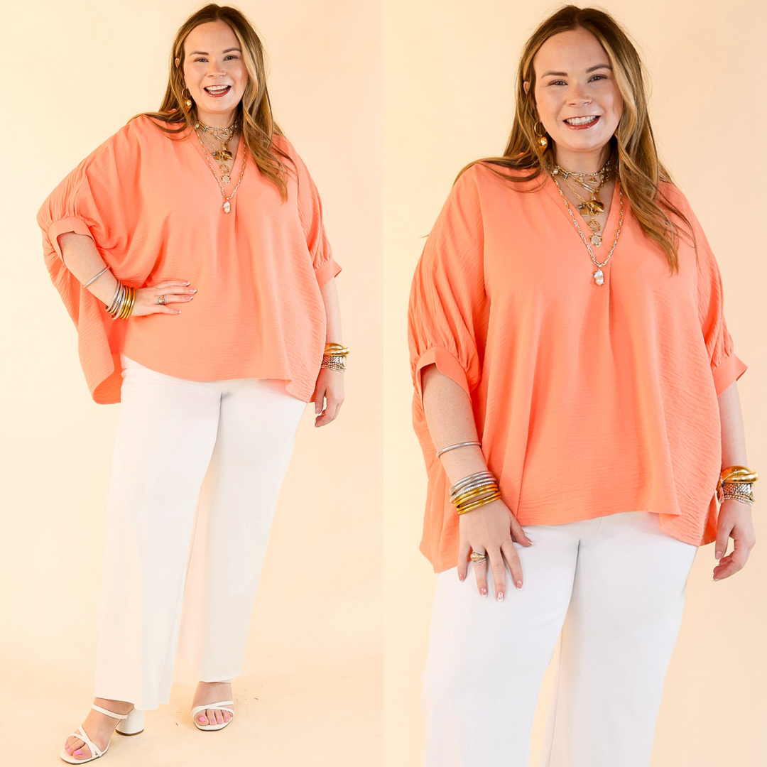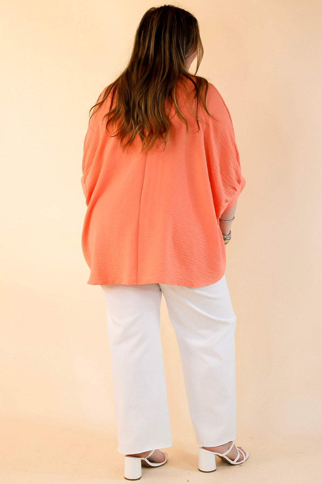 Elevated Basics V Neck Top with Half Sleeves in Coral Orange