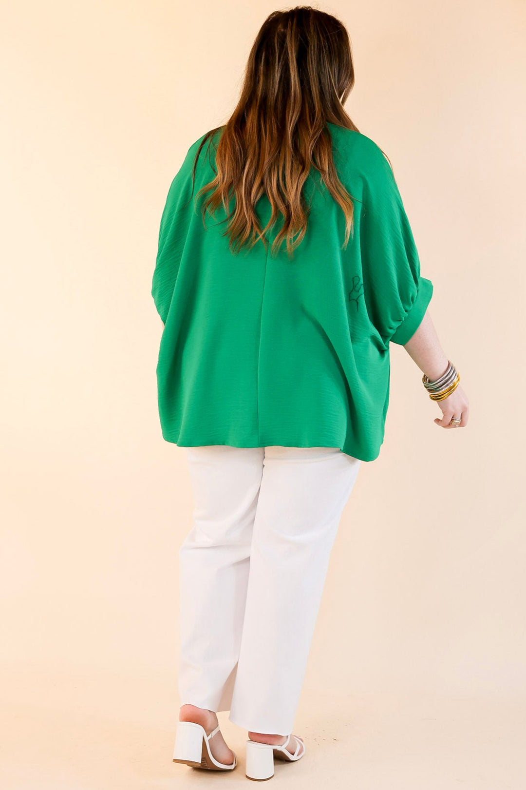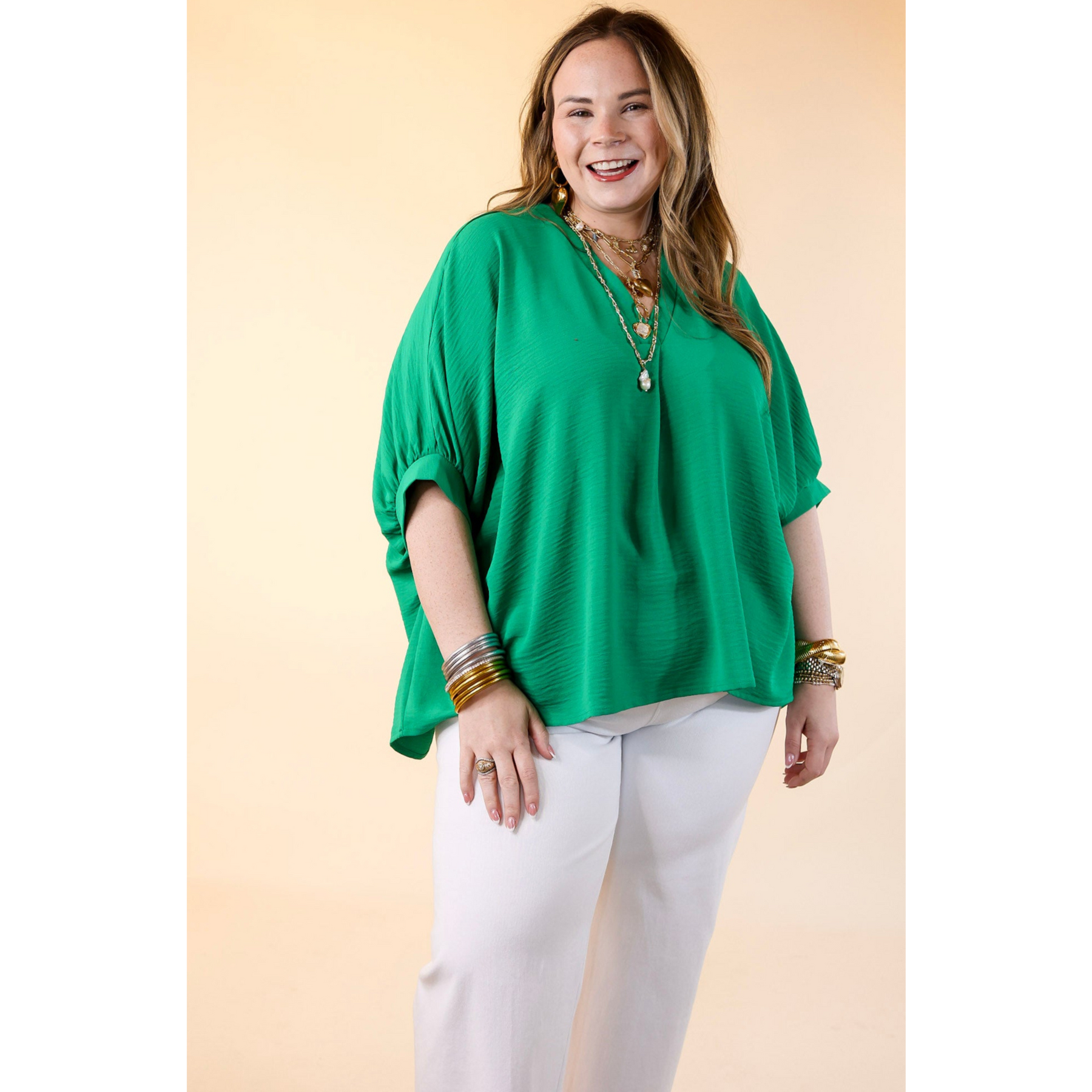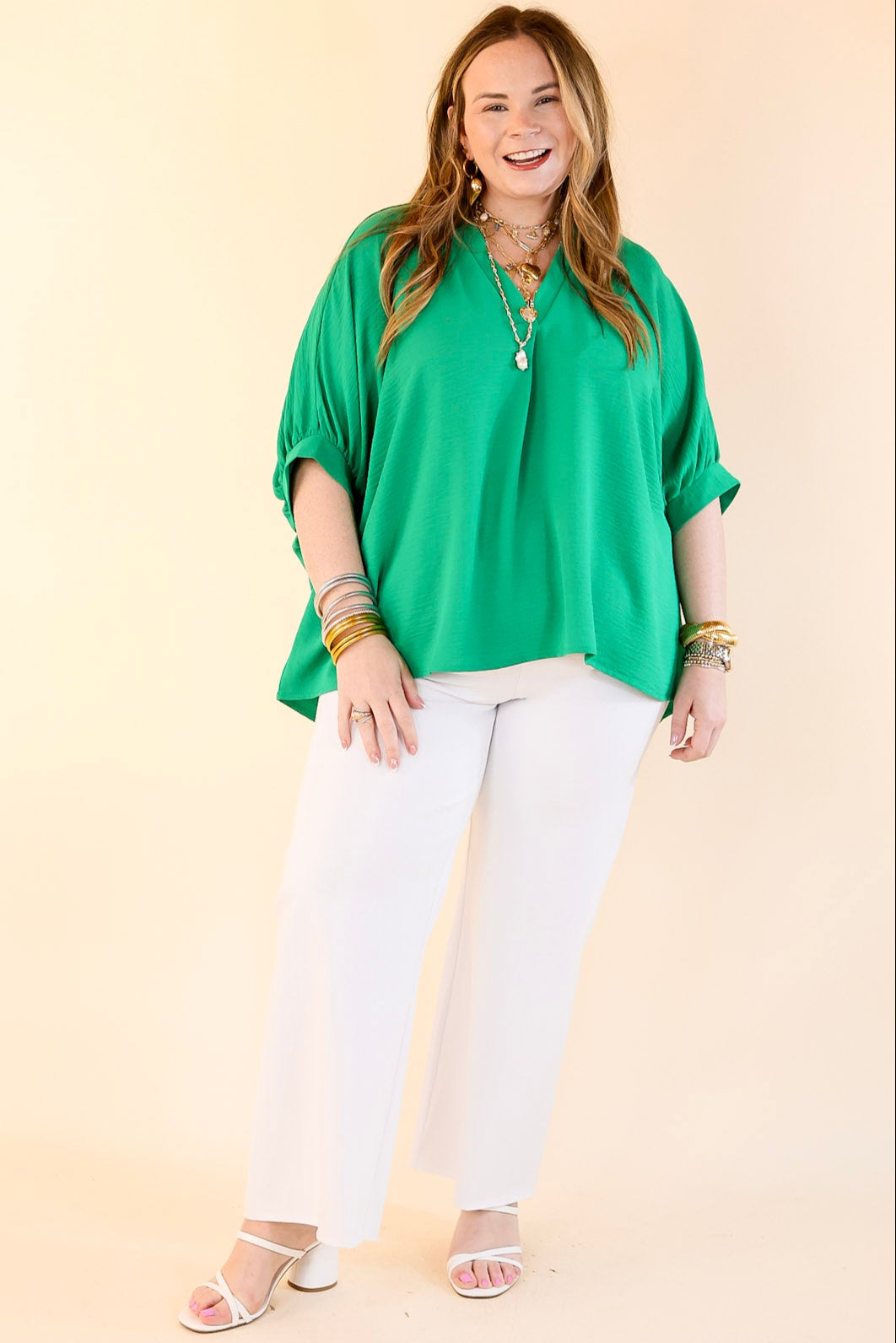 Meet the Elevated Basics top—a timeless essential with a sophisticated twist. Designed with a flattering V-neckline and slightly puffed half sleeves, this top adds just the right amount of polish to any look. Whether you're pairing it with denim for a casual day out or styling it with tailored pants for a refined ensemble, this versatile piece is made to impress. The solid color makes it easy to accessorize, while the effortless fit ensures all-day comfort.