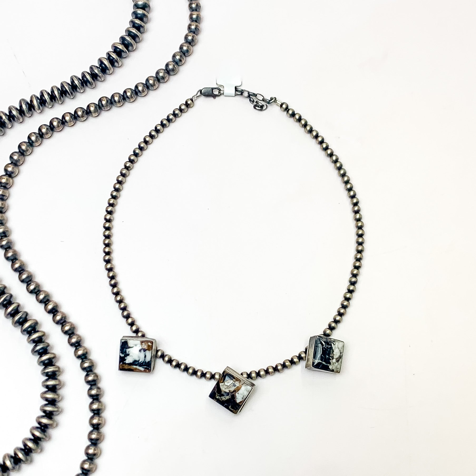 Elouise Kee | Navajo Handmade 4mm 14 inch Navajo Pearl Necklace with 3 Diamond White Buffalo Stones