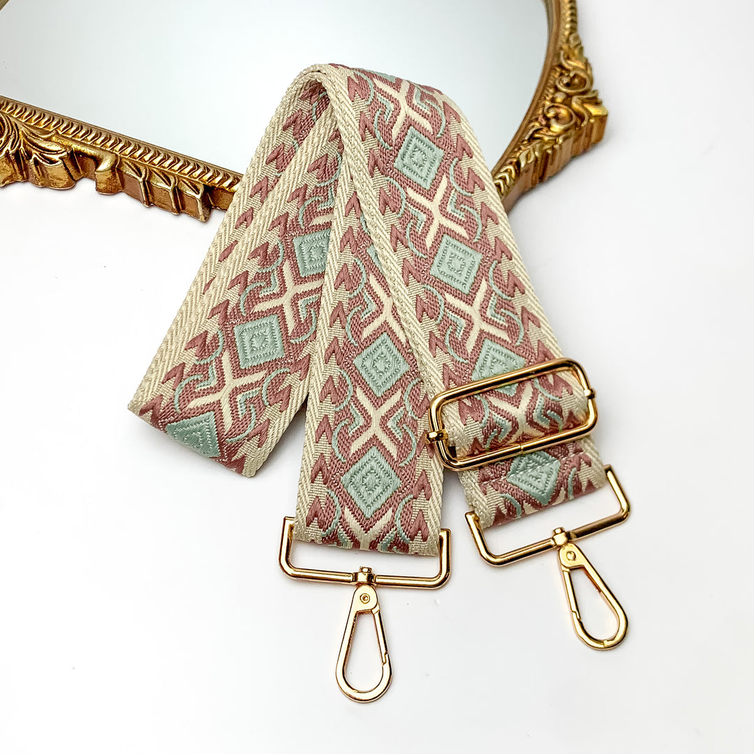 Embroidered Adjustable Purse Strap in Ivory and Beige