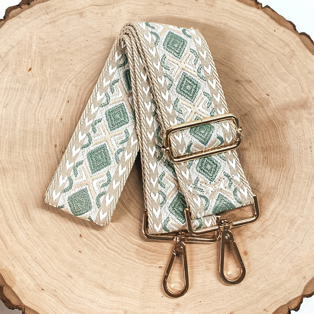 Embroidered Aztec Design Adjustable Purse Strap in Ivory and Mint Green