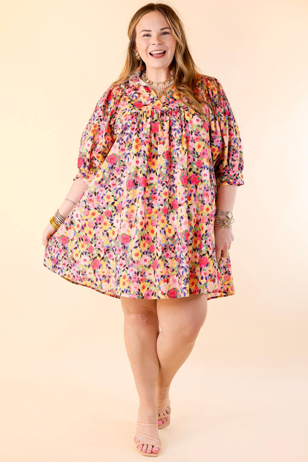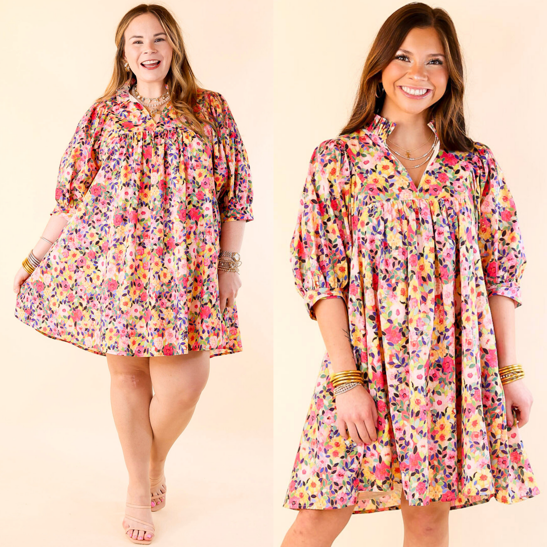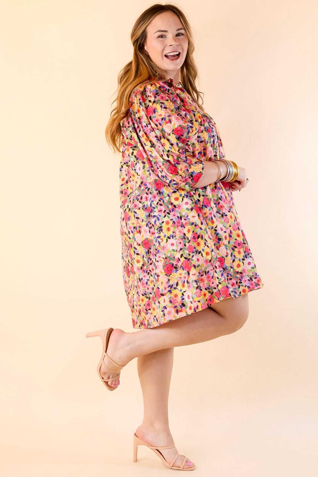 Endless Possibilities Floral Print Dress with a Ruffled Collar in Pink Mix
