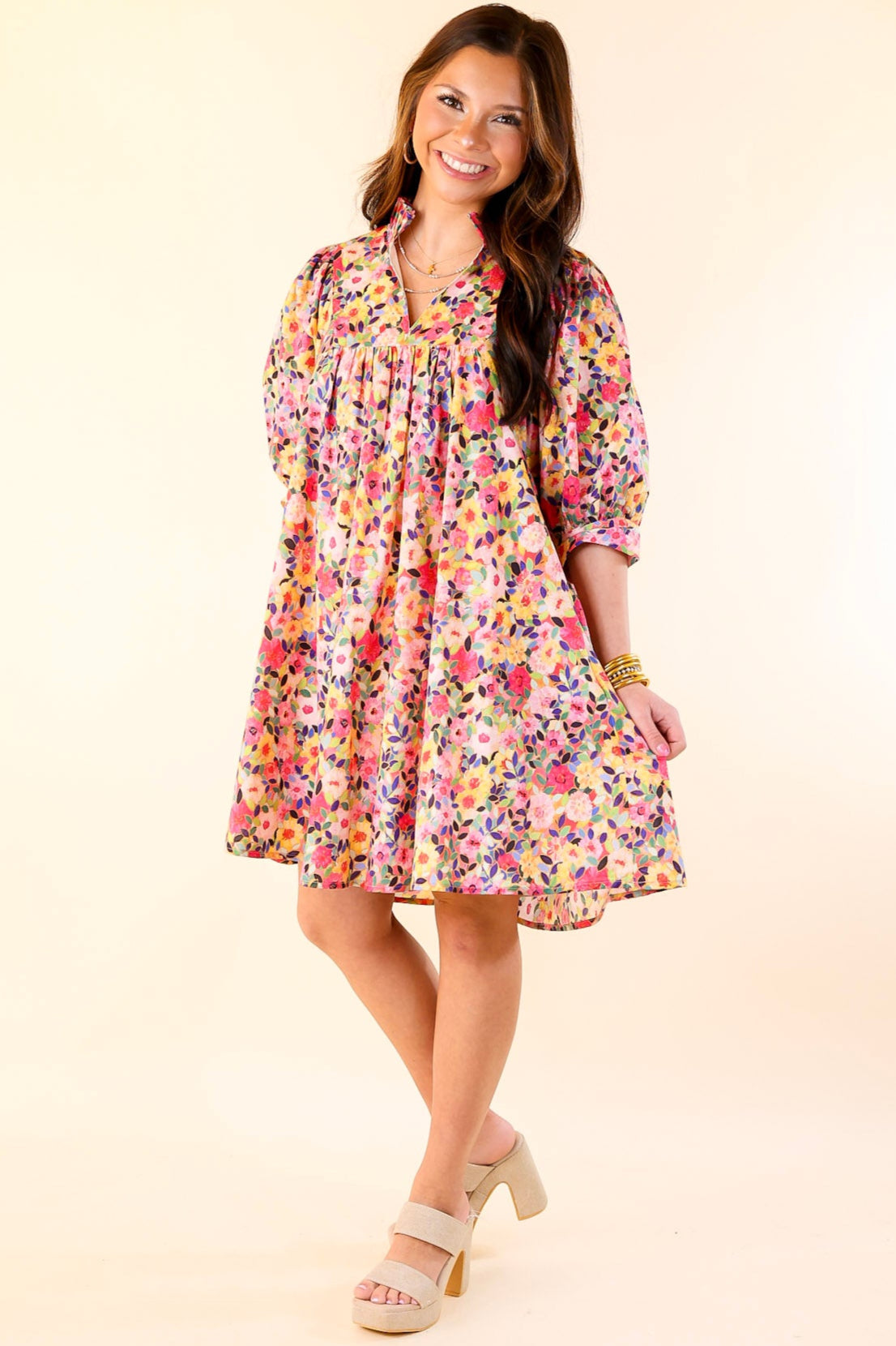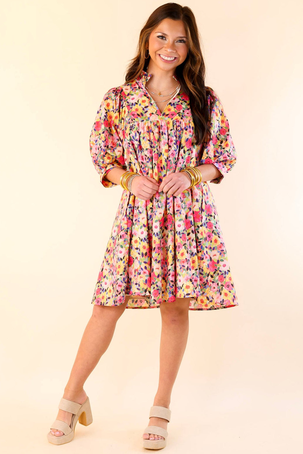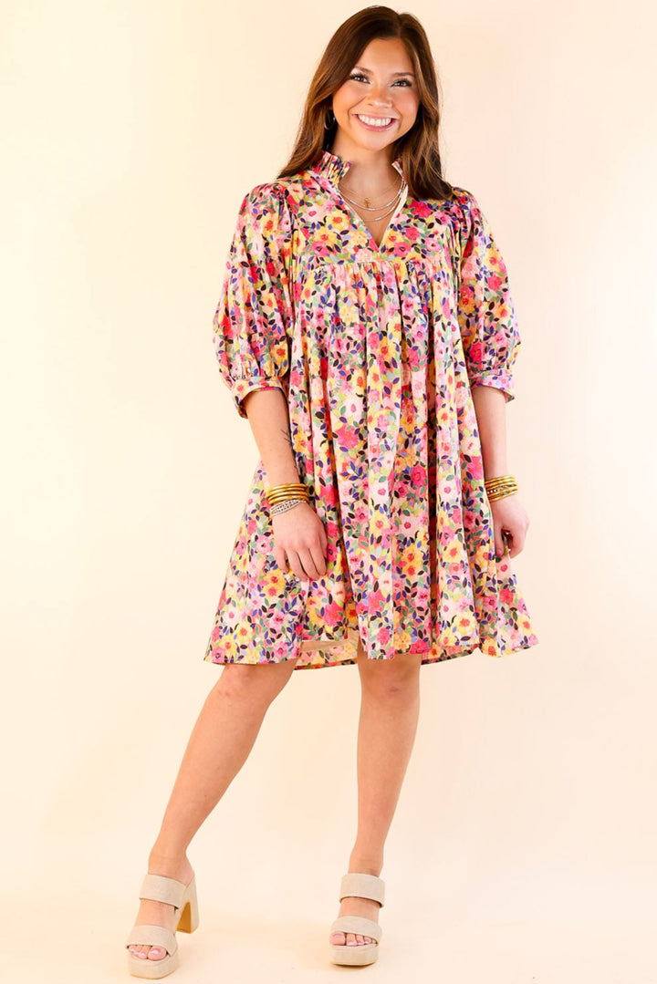 Endless Possibilities Floral Print Dress with a Ruffled Collar in Pink Mix
