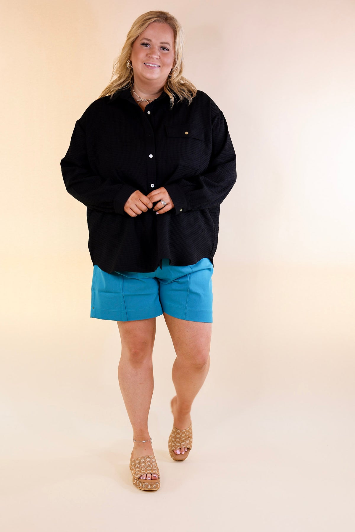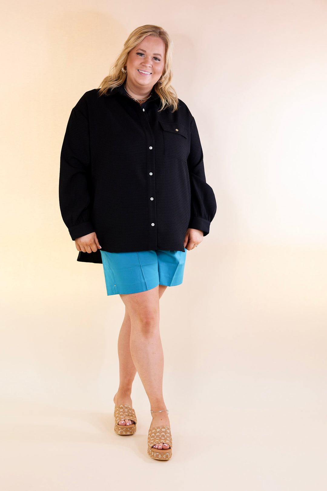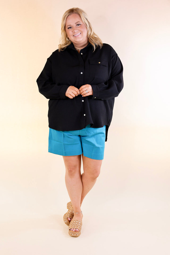 Escaping Ordinary Waffle Weave Button Up Top in Black