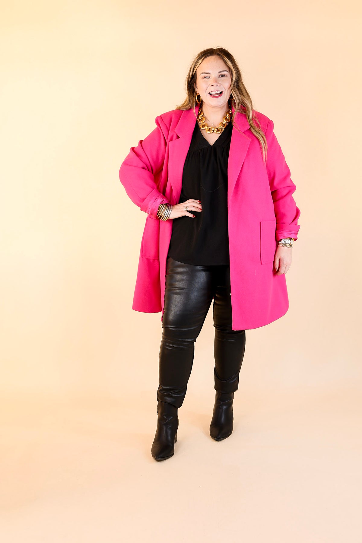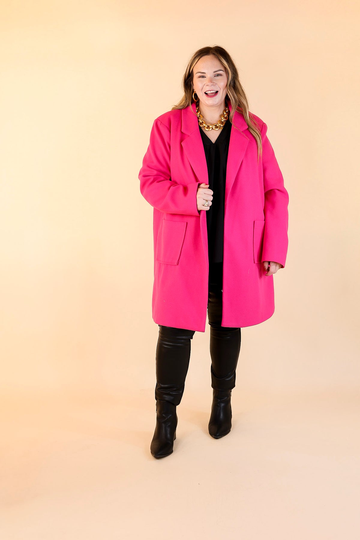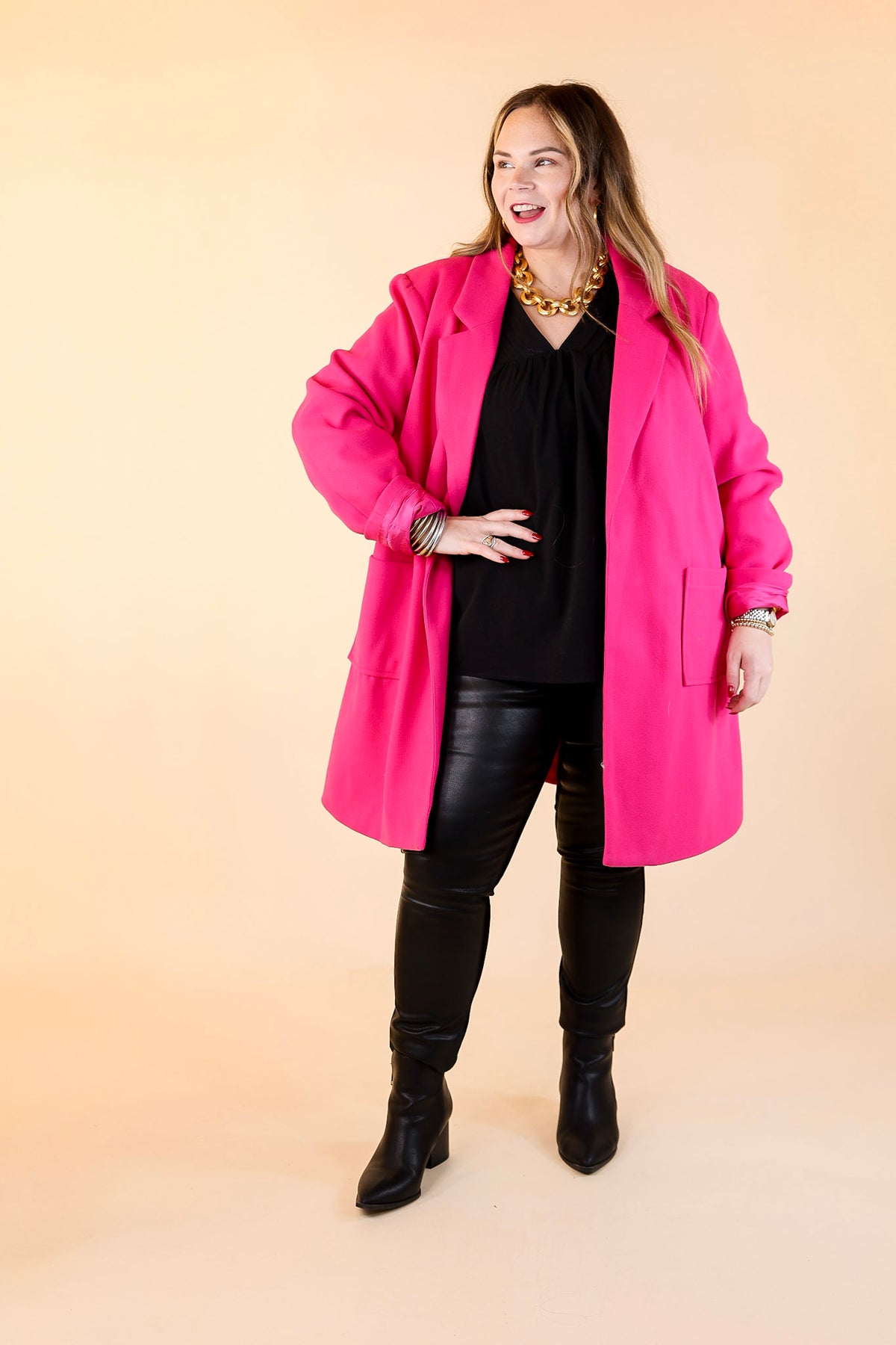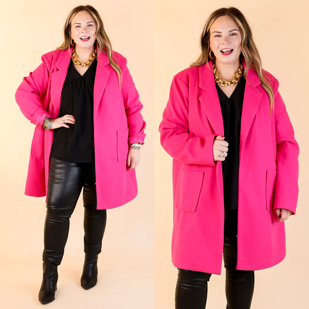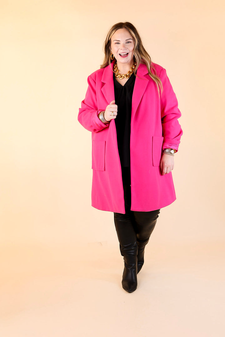 European Holiday Open Front Coat in Hot Pink