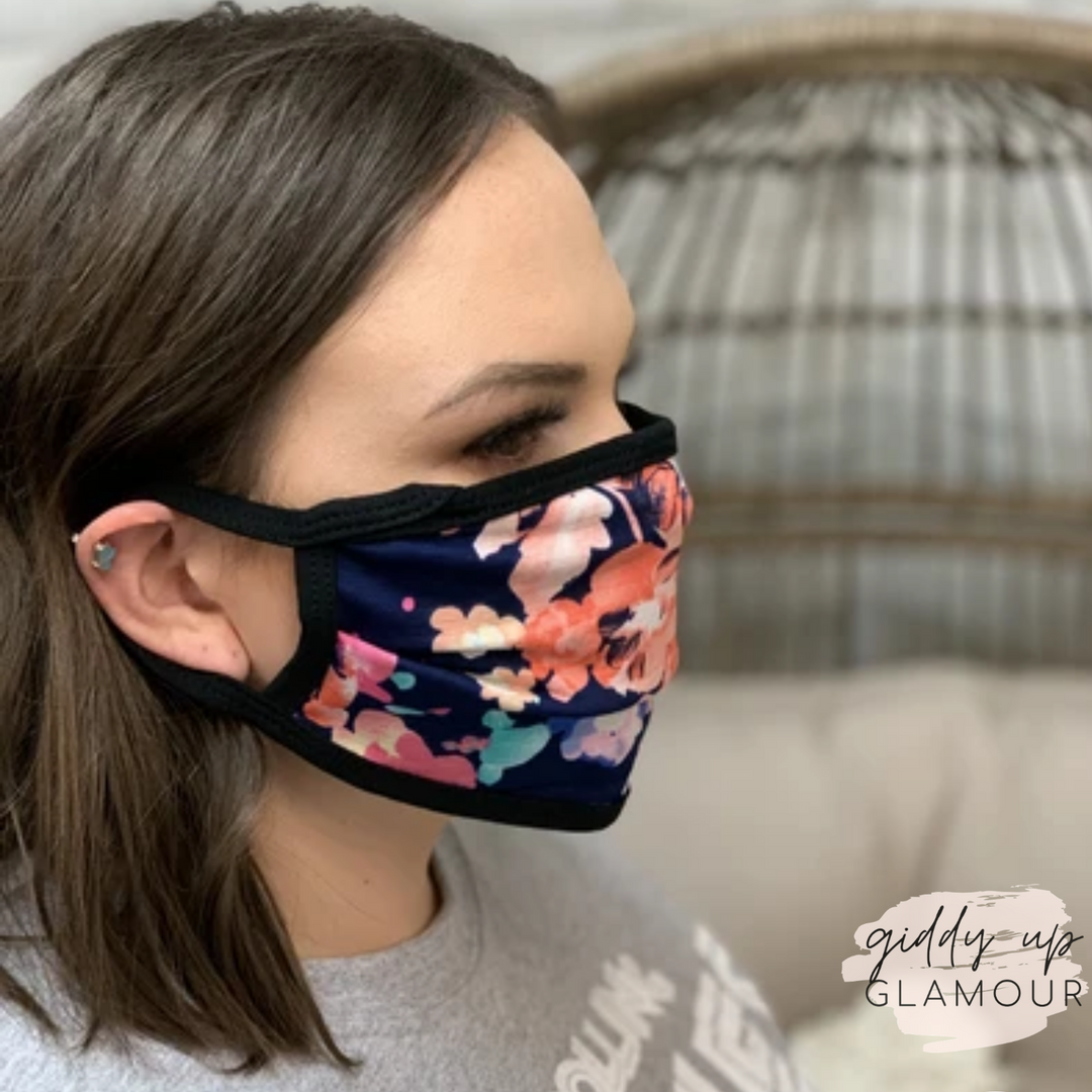 Can't Cover Style Floral Cloth Face Covering in Navy