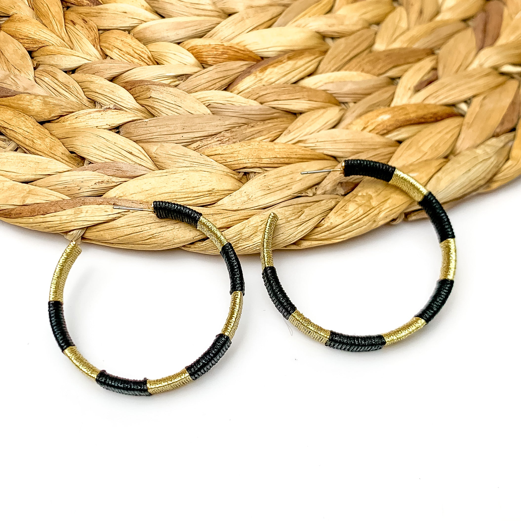 Game Day Glam Colored Hoop Earrings in Black and Gold