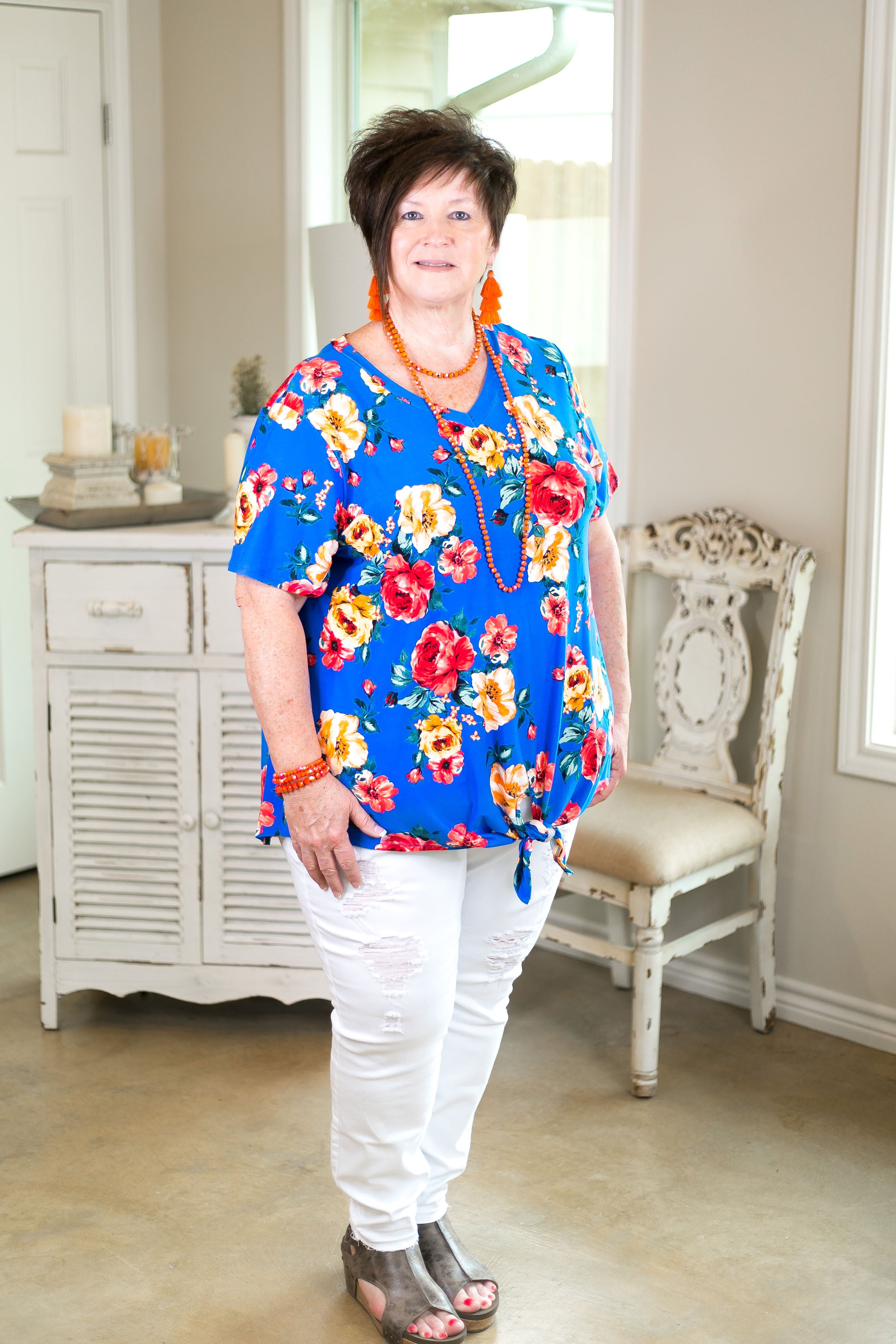 Last Chance Size Small | Girl's Getaway Floral Print Tie Top in Royal Blue