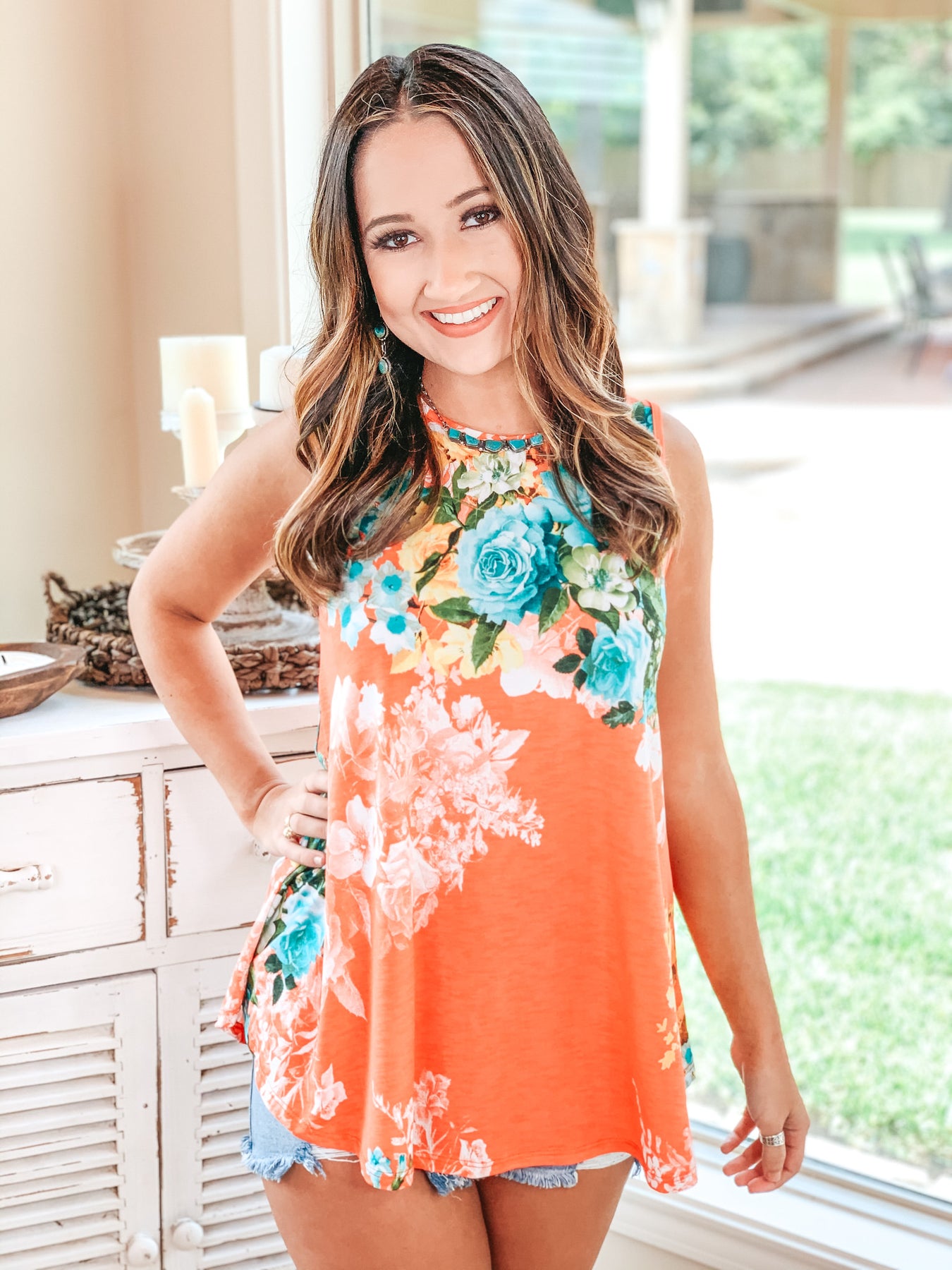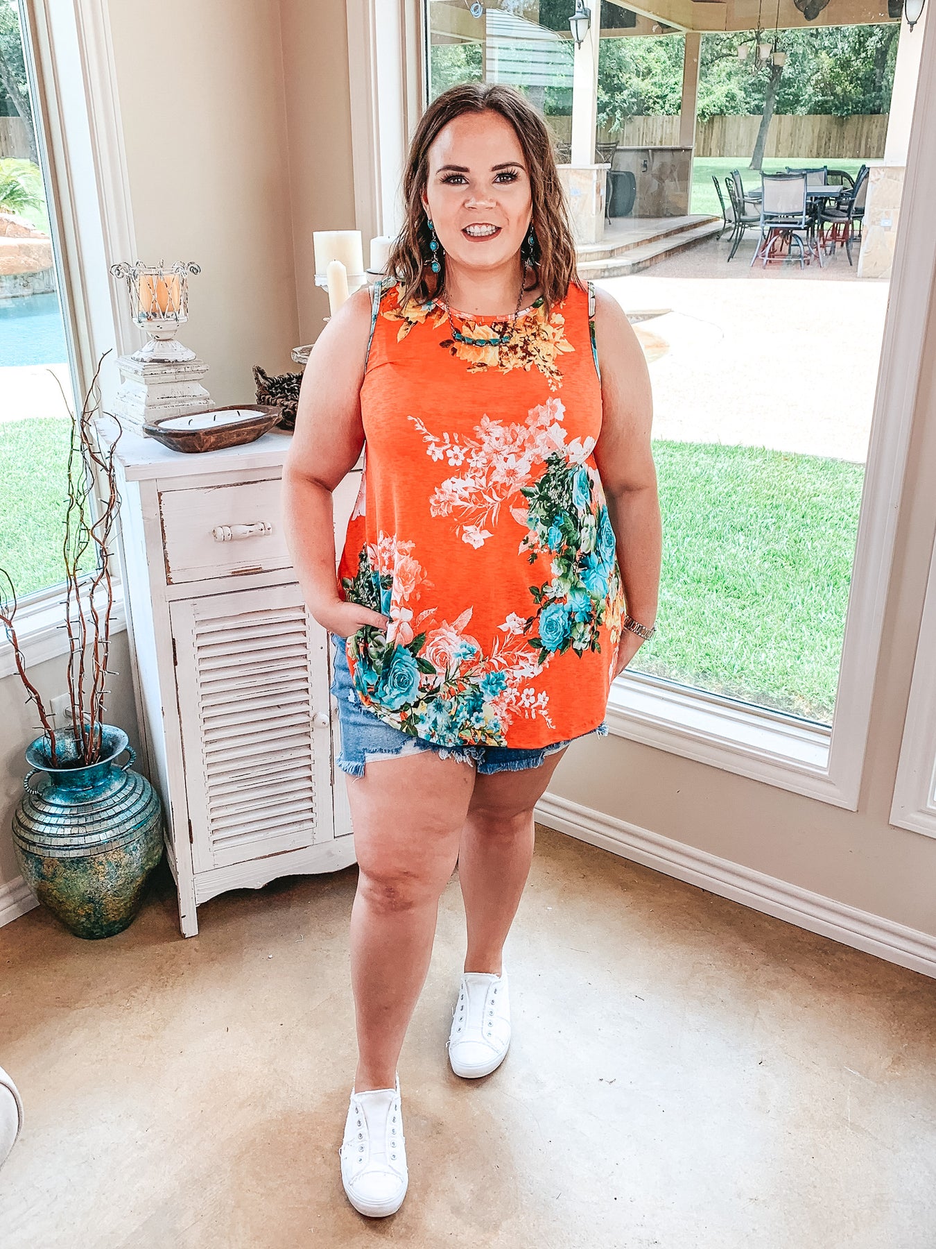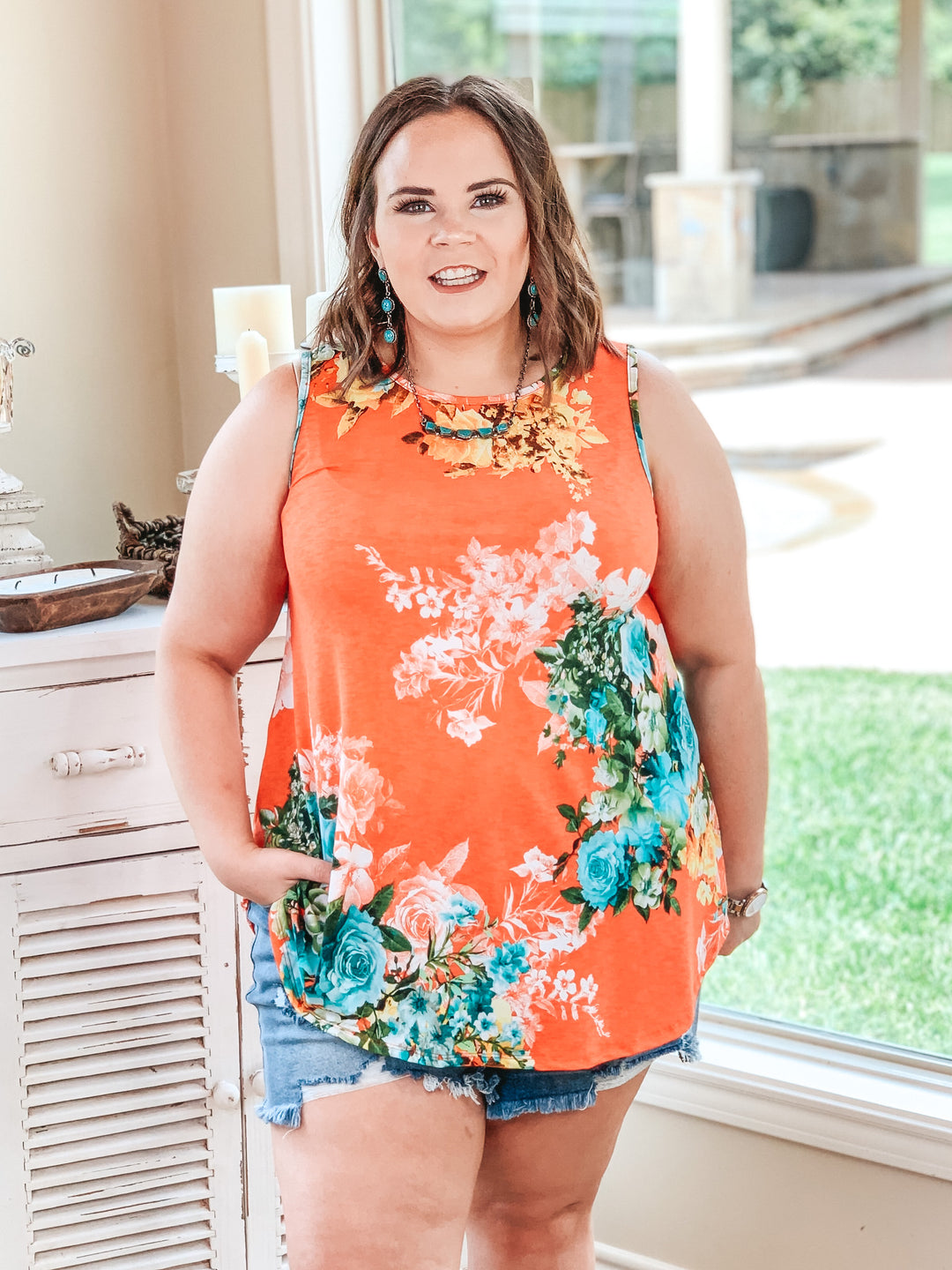 Last Chance Size Small | Give Me Joy A Line Floral Tank Top in Coral