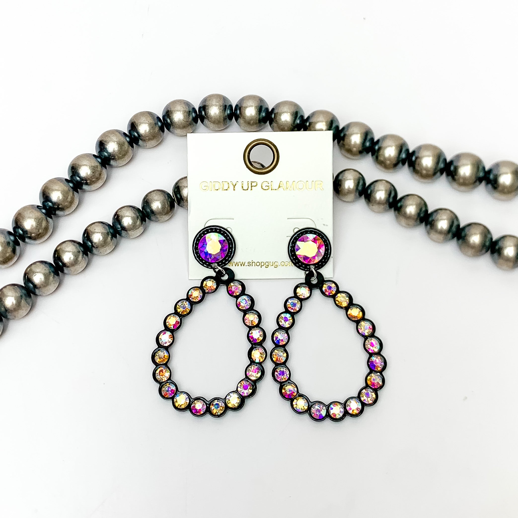 Glitzy Girl AB Crystal Teardrop Earrings in Black