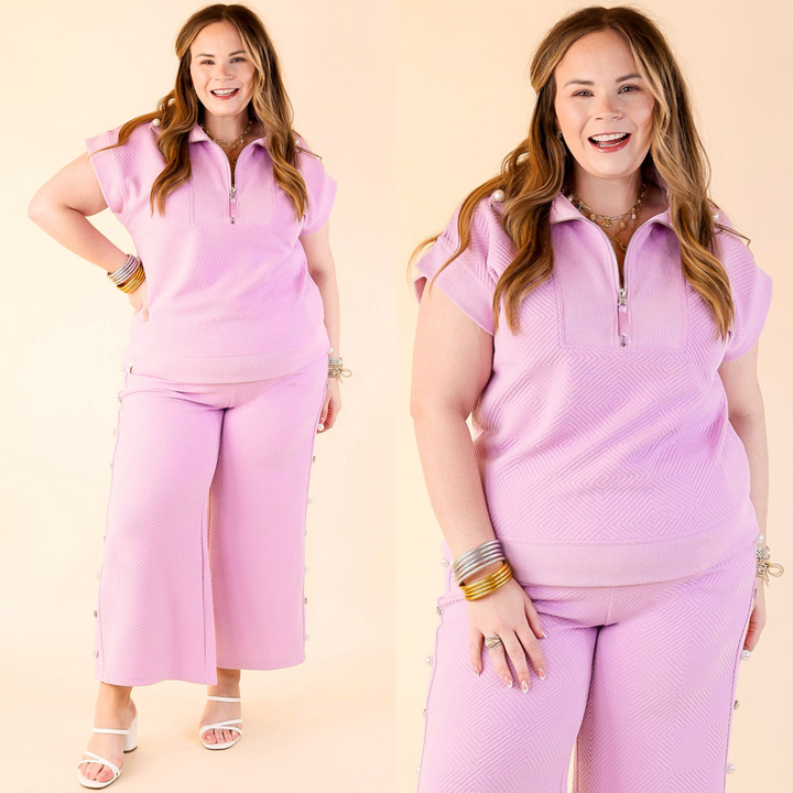Simply Southern | Go-To Glam Textured Quarter Zip Top with Pearls in Orchid Purple